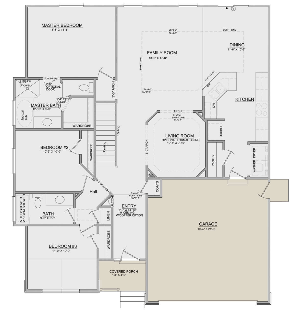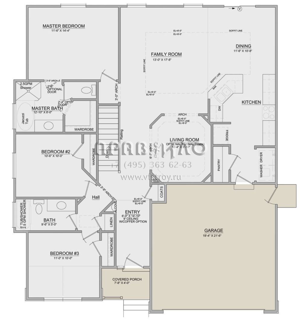 Проект одноэтажного дома с гаражом на две машины в стиле Ранчо S5-140 (8768-00121)