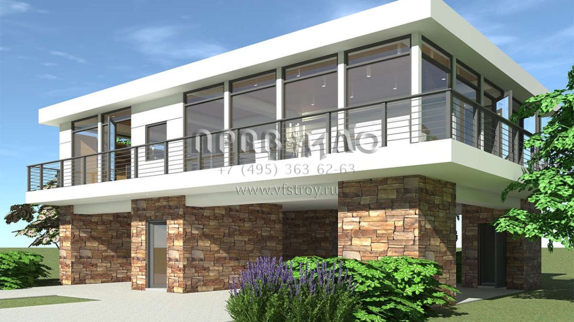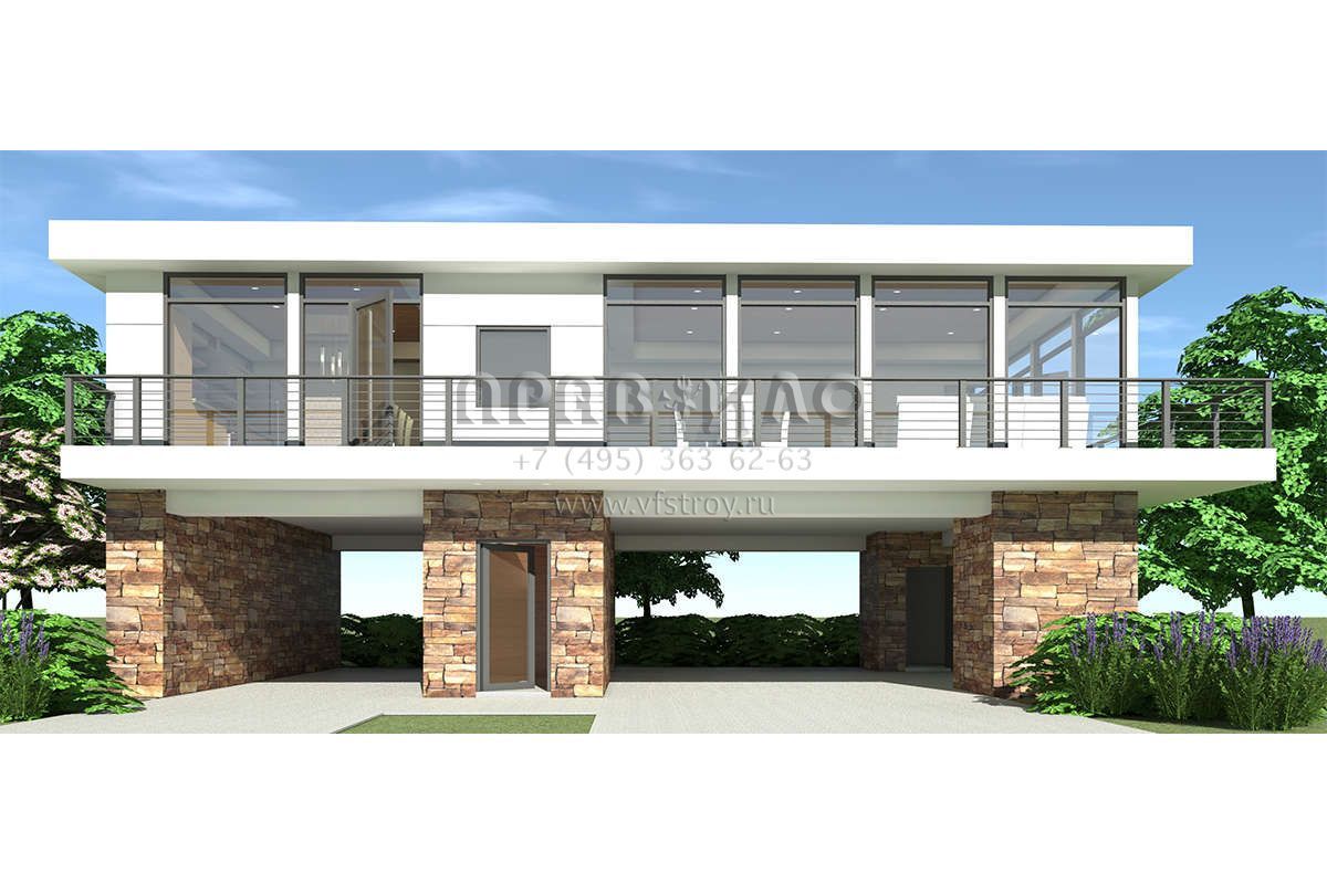 Проект дома хай-тек с навесом на три машины S5-141 (028-00115)