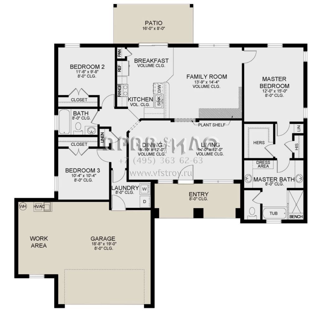 S5-141 (3978-00225) Это иностранный проект, для которого требуется адаптация под нормы, действующие в Российской Федерации. Вы видите проект дома в стиле Ранчо. В этом доме сочетаются черты сельской постройки и аскетичность лофта. Внутри жильцы смогут проводить время с максимальным комфортом. Обратим внимание, что сейчас на планировках все размеры представлены в футах. Для перевода в метры вам необходимо значение в футах умножить на 0,3048.