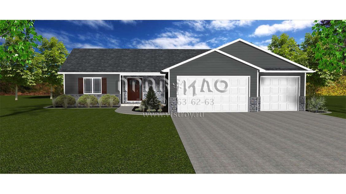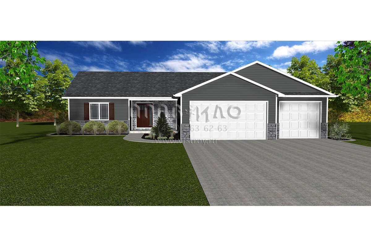 Проект одноэтажного дома с гаражом на три и более машин в стиле Ранчо S5-141 (5678-00015)
