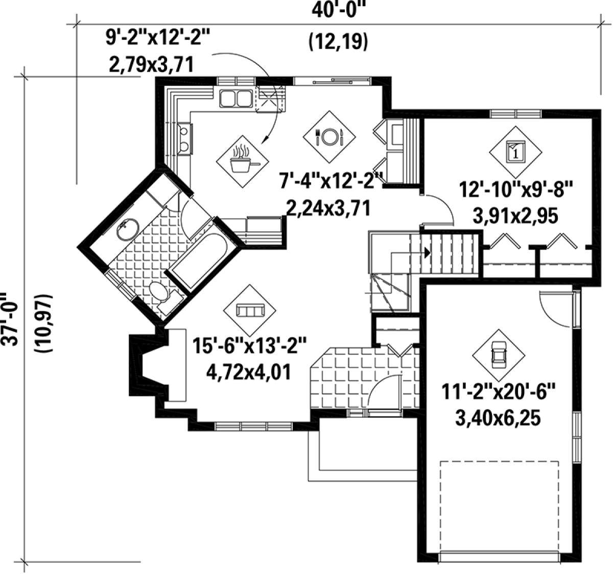 Проект одноэтажного дома с гаражом на одну машину в стиле Ранчо S5-141 (6146-00057)