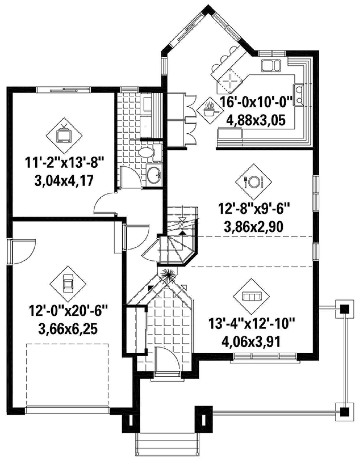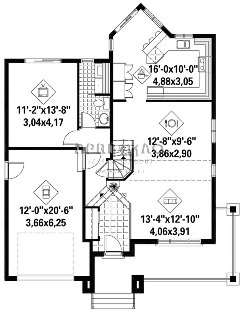 Проект двухэтажного дома с гаражом на одну машину в стиле Ранчо S5-141 (6146-00342)