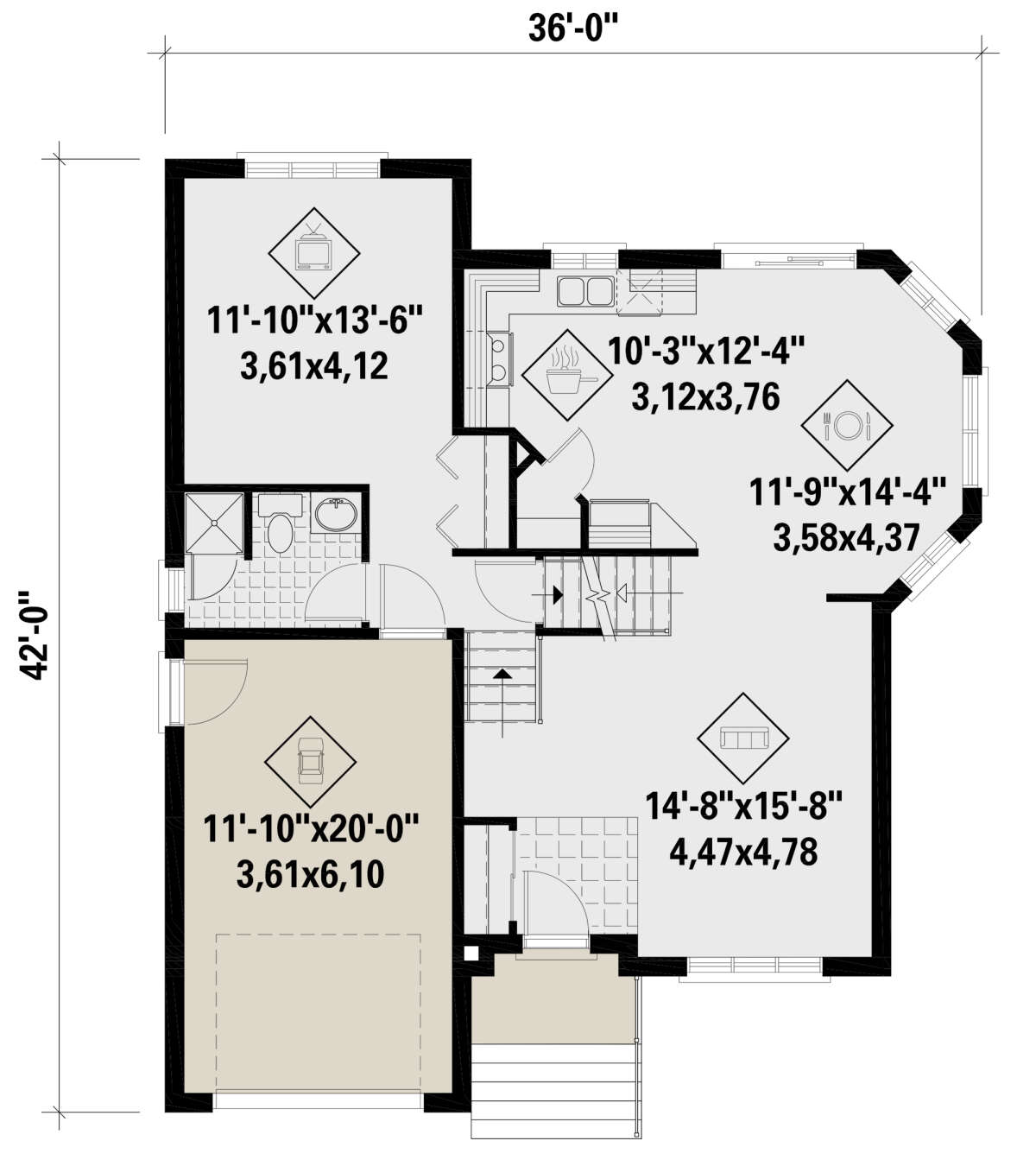 Проект двухэтажного дома с гаражом на одну машину в стиле Ранчо S5-141 (6146-00469)