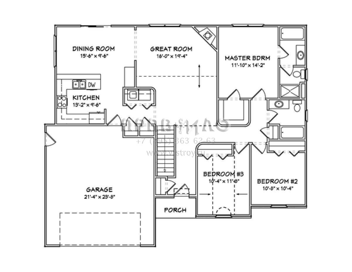 S5-141 (849-00066) Это иностранный проект, для которого требуется адаптация под нормы, действующие в Российской Федерации. Вы видите проект дома в стиле Ранчо. В этом доме сочетаются черты сельской постройки и аскетичность лофта. Внутри жильцы смогут проводить время с максимальным комфортом. Обратим внимание, что сейчас на планировках все размеры представлены в футах. Для перевода в метры вам необходимо значение в футах умножить на 0,3048.