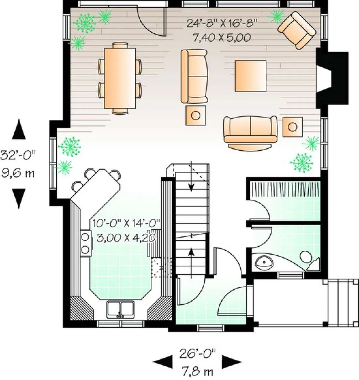 Проект двухэтажного дома без гаража в стиле Ранчо S5-142 (034-00775)