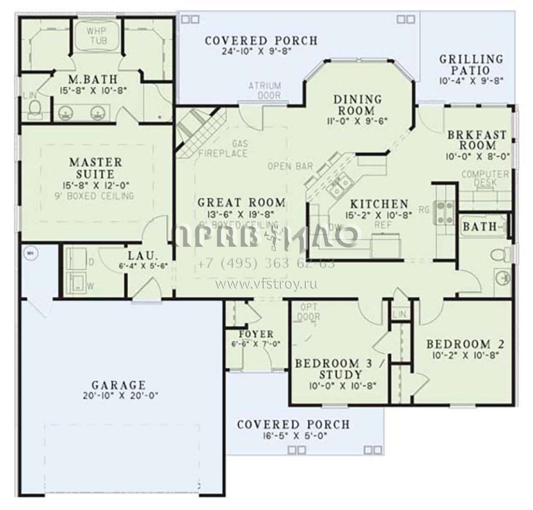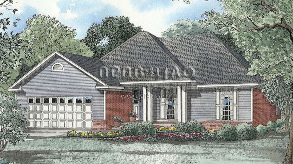 Проект одноэтажного дома с гаражом на две машины в стиле Ранчо S5-142 (110-00024)