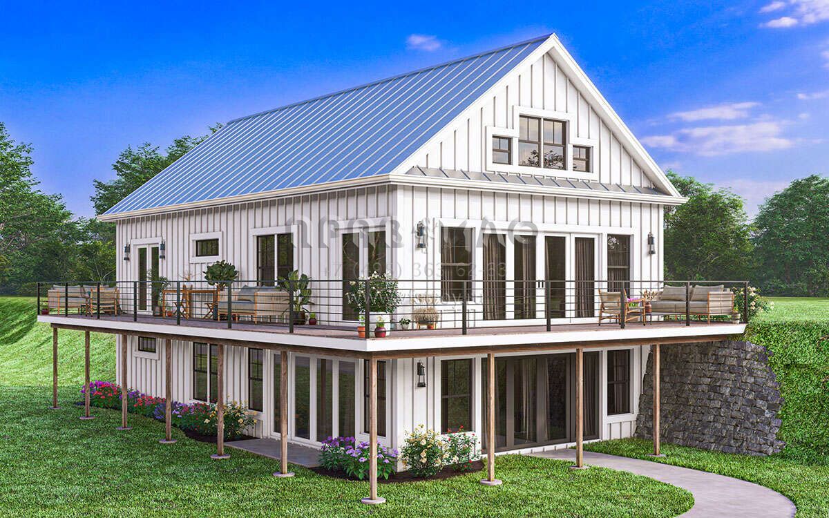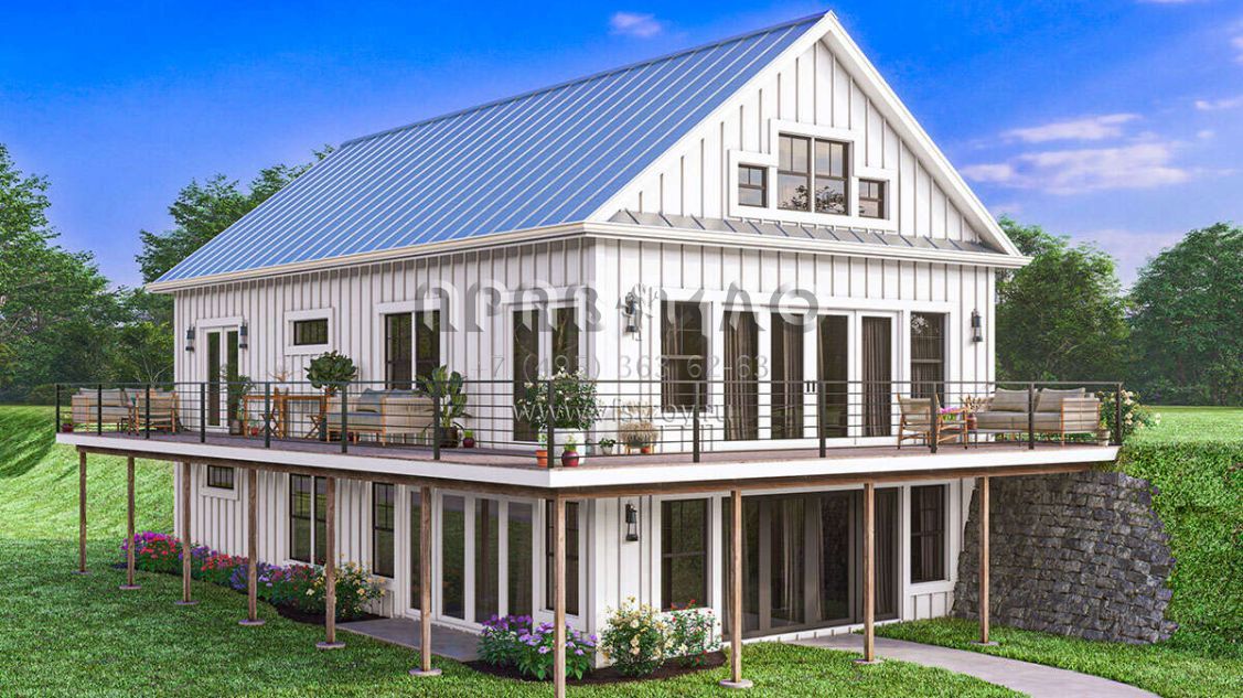 S5-142 (1462-00083) Это иностранный проект, для которого требуется адаптация под нормы, действующие в Российской Федерации. Вы видите проект дома в современном стиле. В этом доме сочетаются черты сельской постройки и аскетичность лофта. Внутри жильцы смогут проводить время с максимальным комфортом. Обратим внимание, что сейчас на планировках все размеры представлены в футах. Для перевода в метры вам необходимо значение в футах умножить на 0,3048.