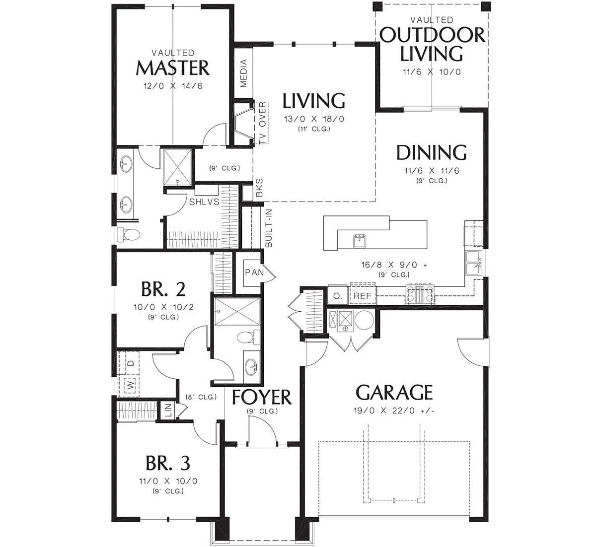 Проект одноэтажного дома с гаражом на две машины в американском стиле S5-142 (2559-00679)