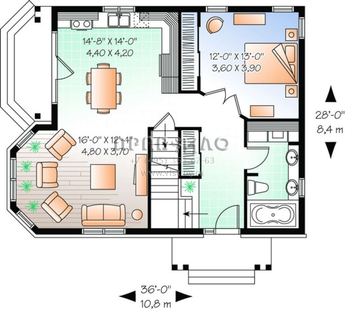 S5-143 (034-00782) Это иностранный проект, для которого требуется адаптация под нормы, действующие в Российской Федерации. Вы видите проект дома в стиле Ранчо. В этом доме сочетаются черты сельской постройки и аскетичность лофта. Внутри жильцы смогут проводить время с максимальным комфортом. Обратим внимание, что сейчас на планировках все размеры представлены в футах. Для перевода в метры вам необходимо значение в футах умножить на 0,3048.