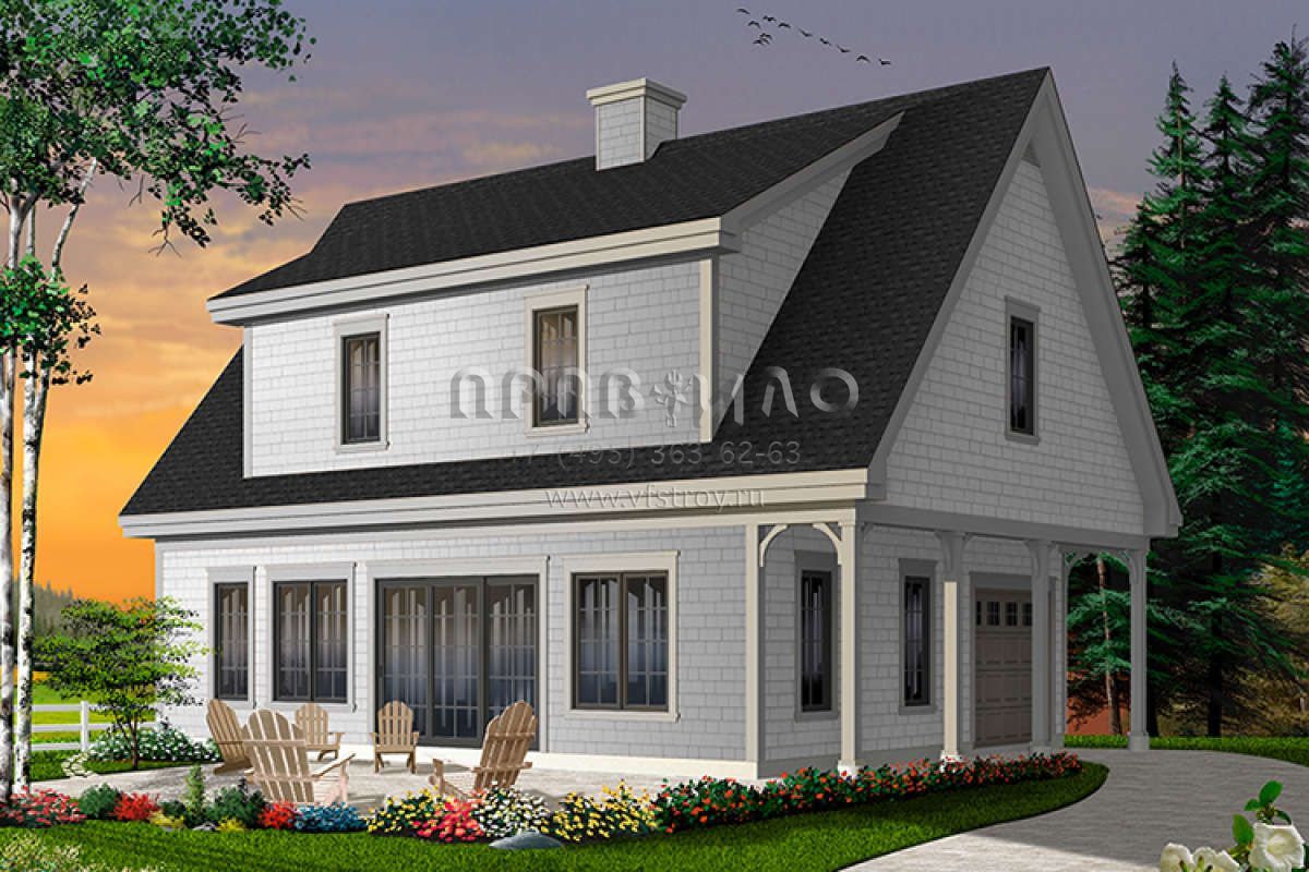 Проект двухэтажного дома с гаражом на одну машину в американском стиле S5-143 (034-01042)