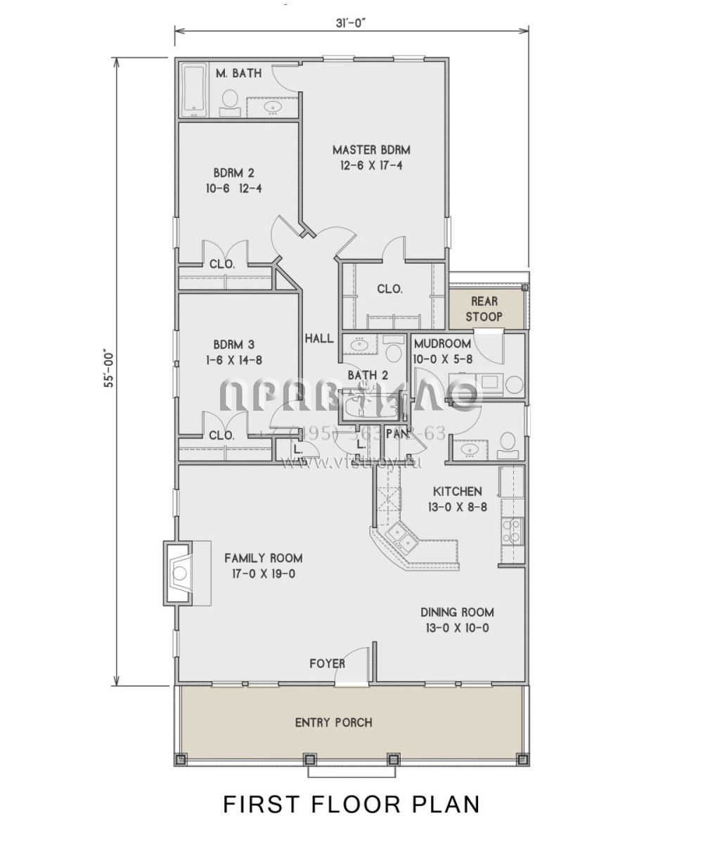 Проект одноэтажного дома без гаража в стиле Ранчо S5-143 (4351-00035)