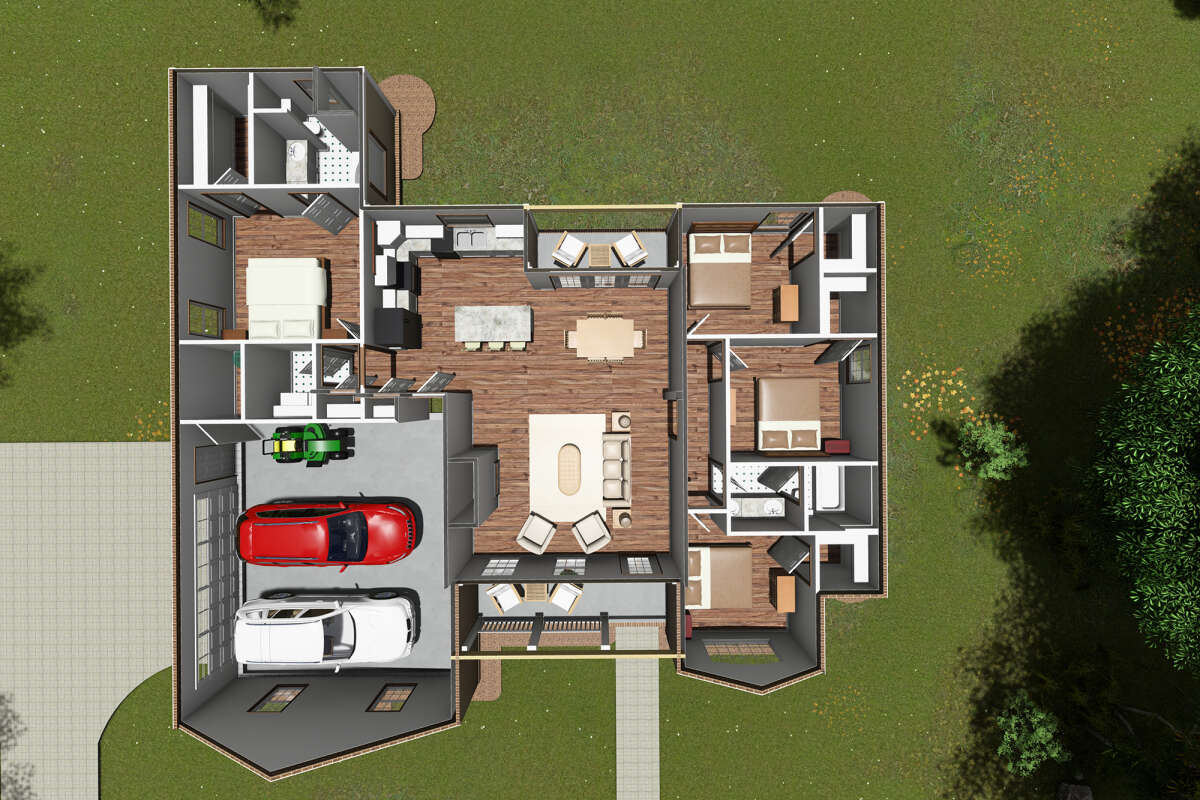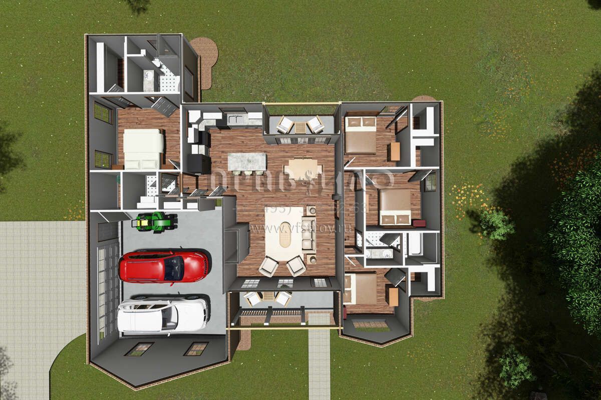 Проект одноэтажного дома с гаражом на две машины в стиле Ранчо S5-143 (4848-00281)