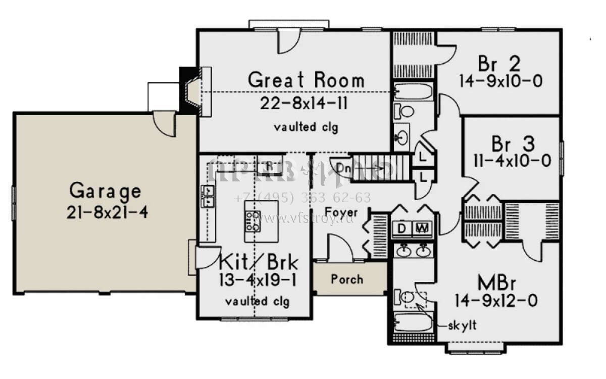 S5-143 (5633-00432) Это иностранный проект, для которого требуется адаптация под нормы, действующие в Российской Федерации. Вы видите проект дома в стиле Ранчо. В этом доме сочетаются черты сельской постройки и аскетичность лофта. Внутри жильцы смогут проводить время с максимальным комфортом. Обратим внимание, что сейчас на планировках все размеры представлены в футах. Для перевода в метры вам необходимо значение в футах умножить на 0,3048.