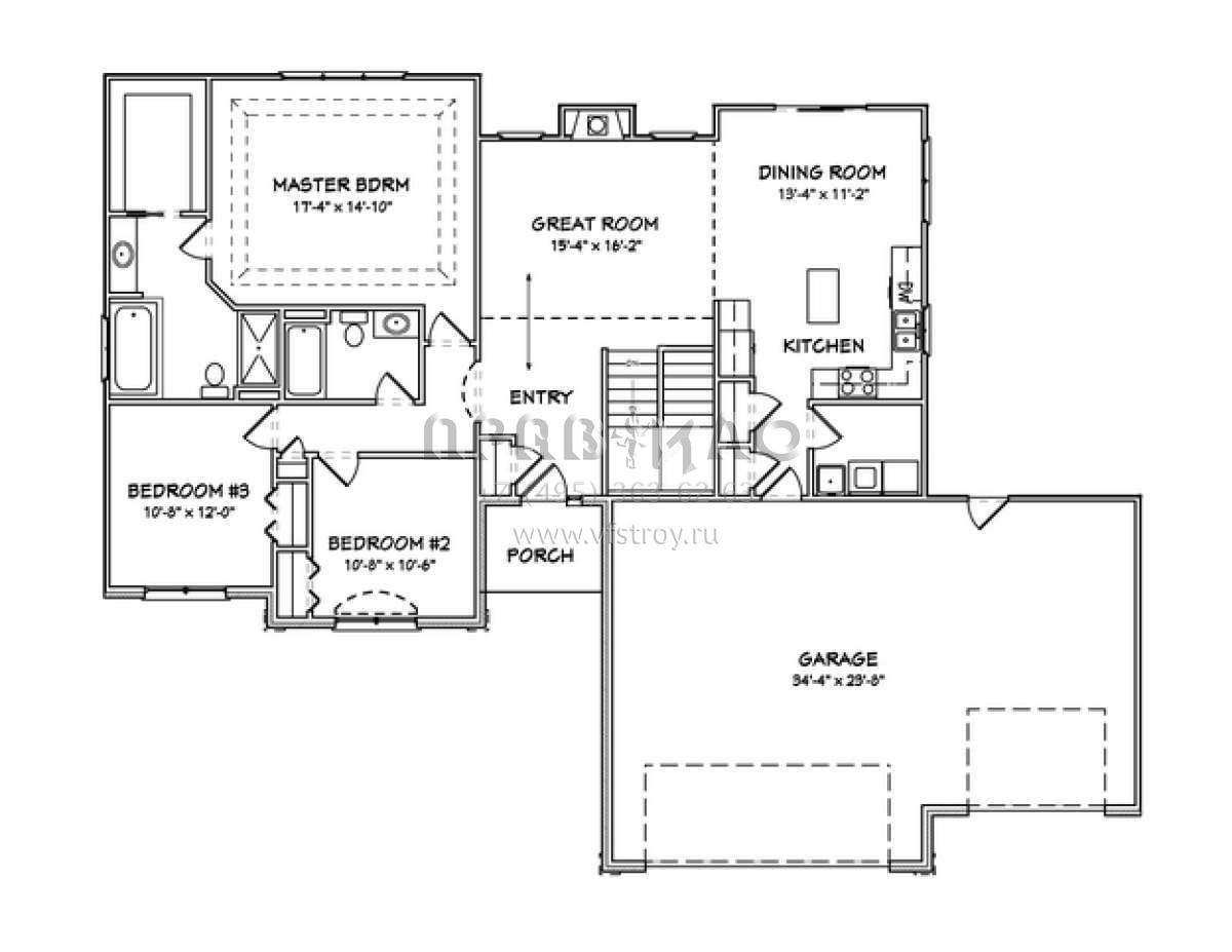 Проект одноэтажного дома с гаражом на три и более машин в стиле Ранчо S5-143 (849-00037)