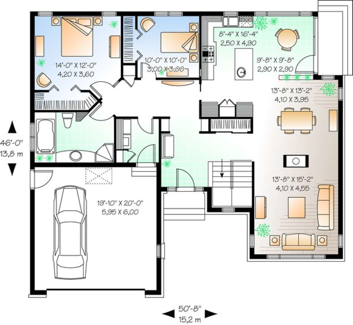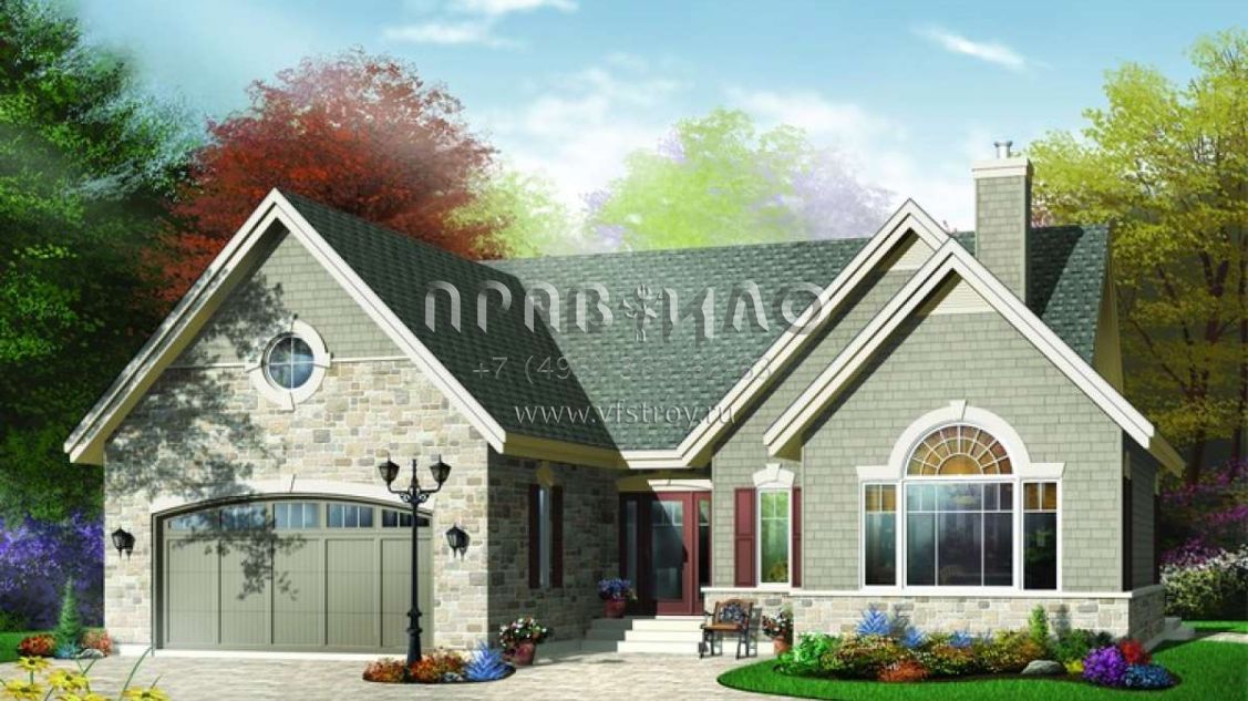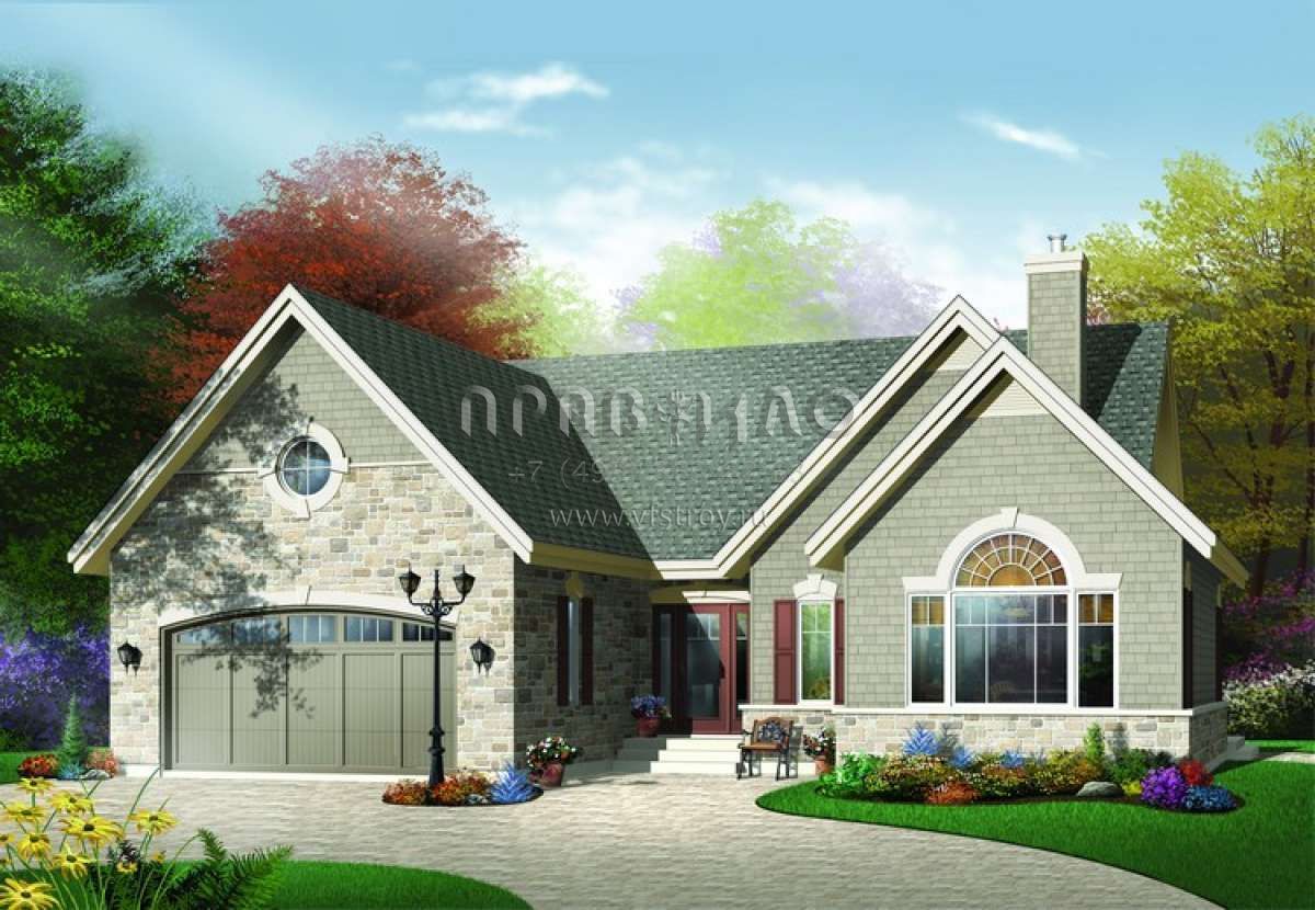 Проект двухэтажного дома с гаражом на две машины в стиле Ранчо S5-144 (034-00647)
