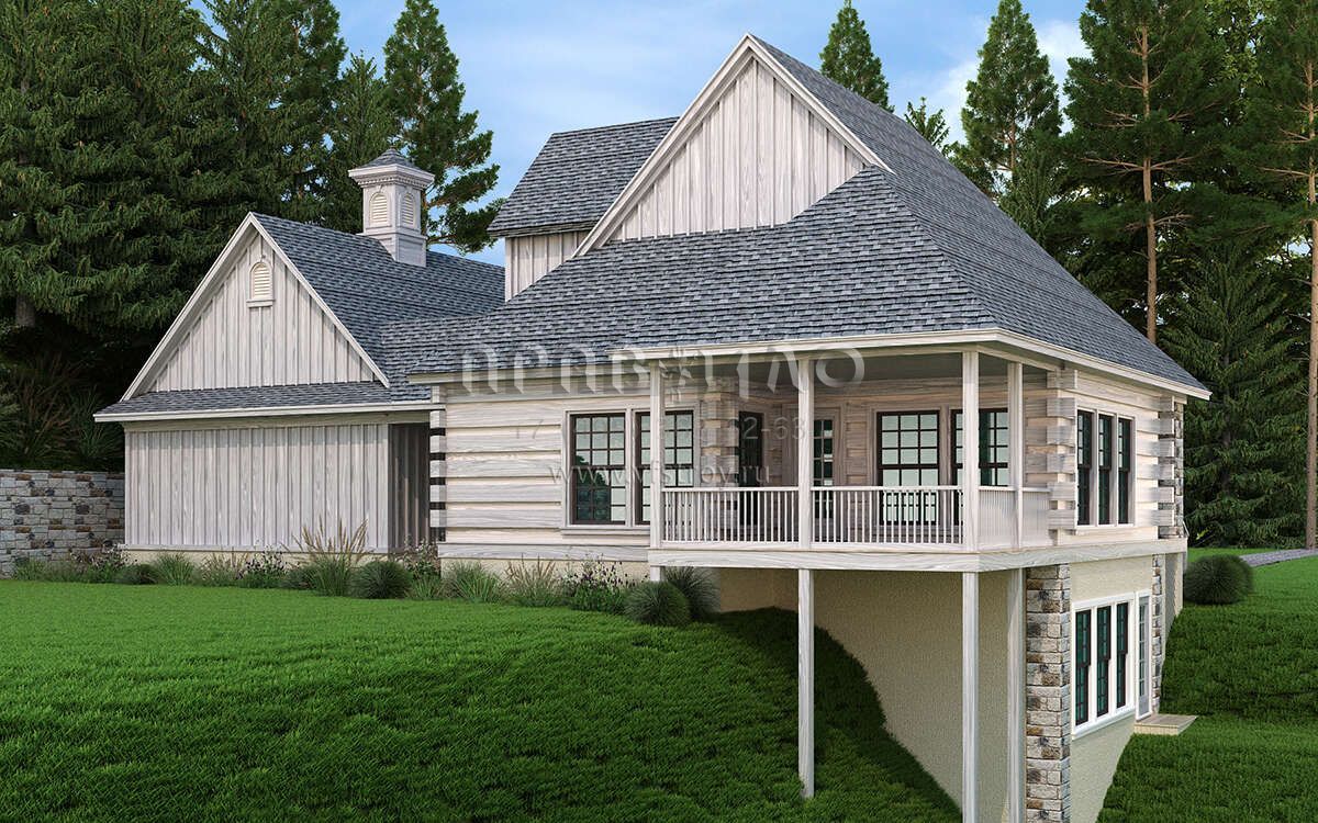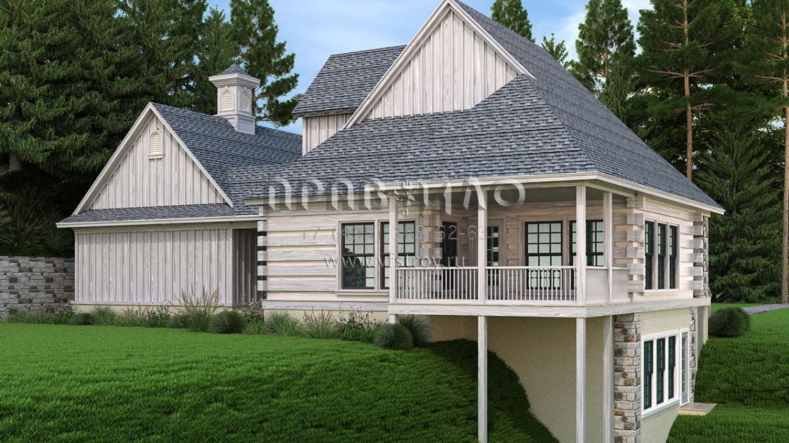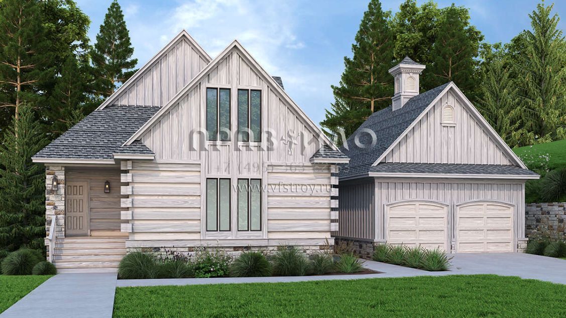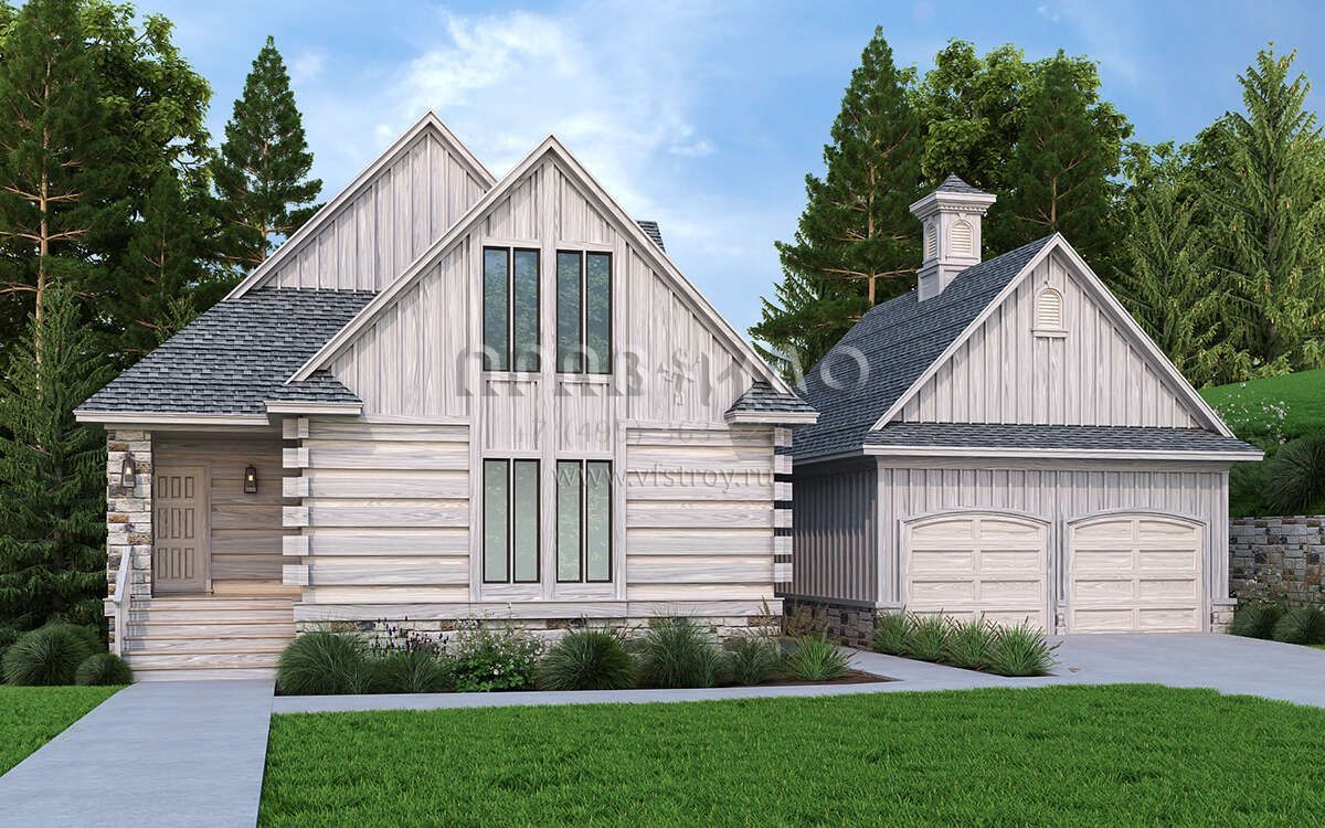 Проект двухэтажного дома с гаражом на две машины в русском стиле S5-144 (048-00291)