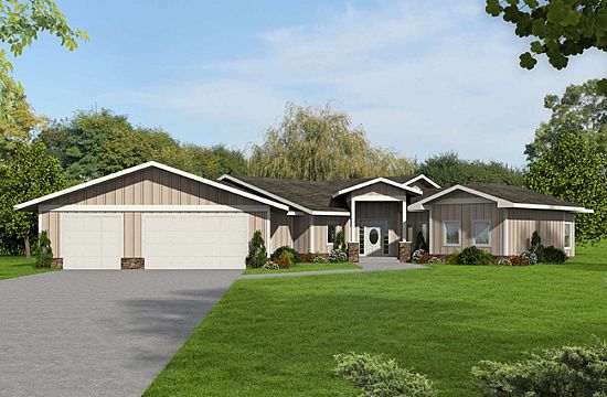Проект одноэтажного дома с гаражом на три и более машин в стиле Ранчо S5-144 (2802-00178)