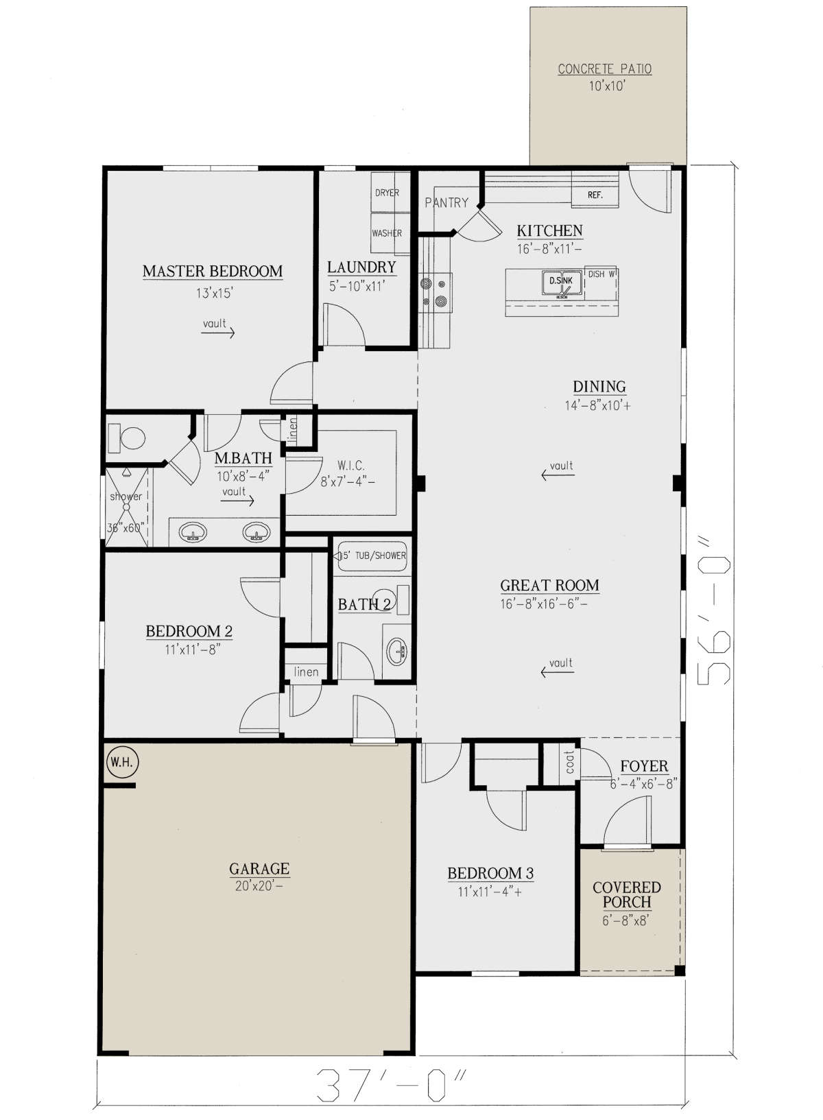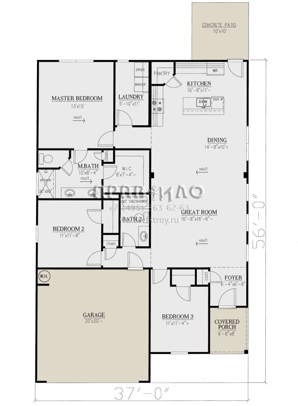 Проект одноэтажного дома с гаражом на две машины в стиле Ранчо S5-144 (286-00092)