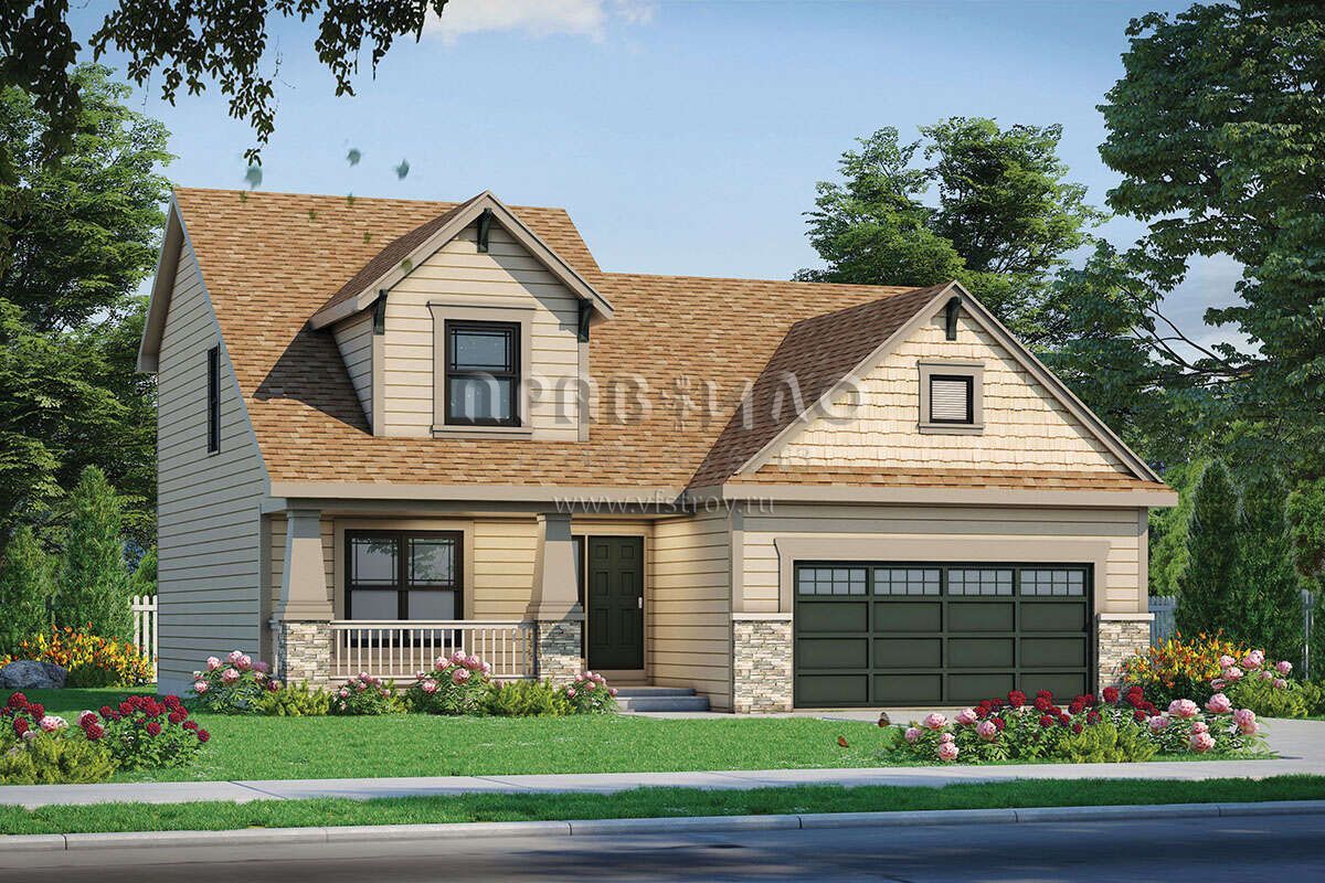 Проект двухэтажного дома с гаражом на две машины в американском стиле S5-144 (402-01654)