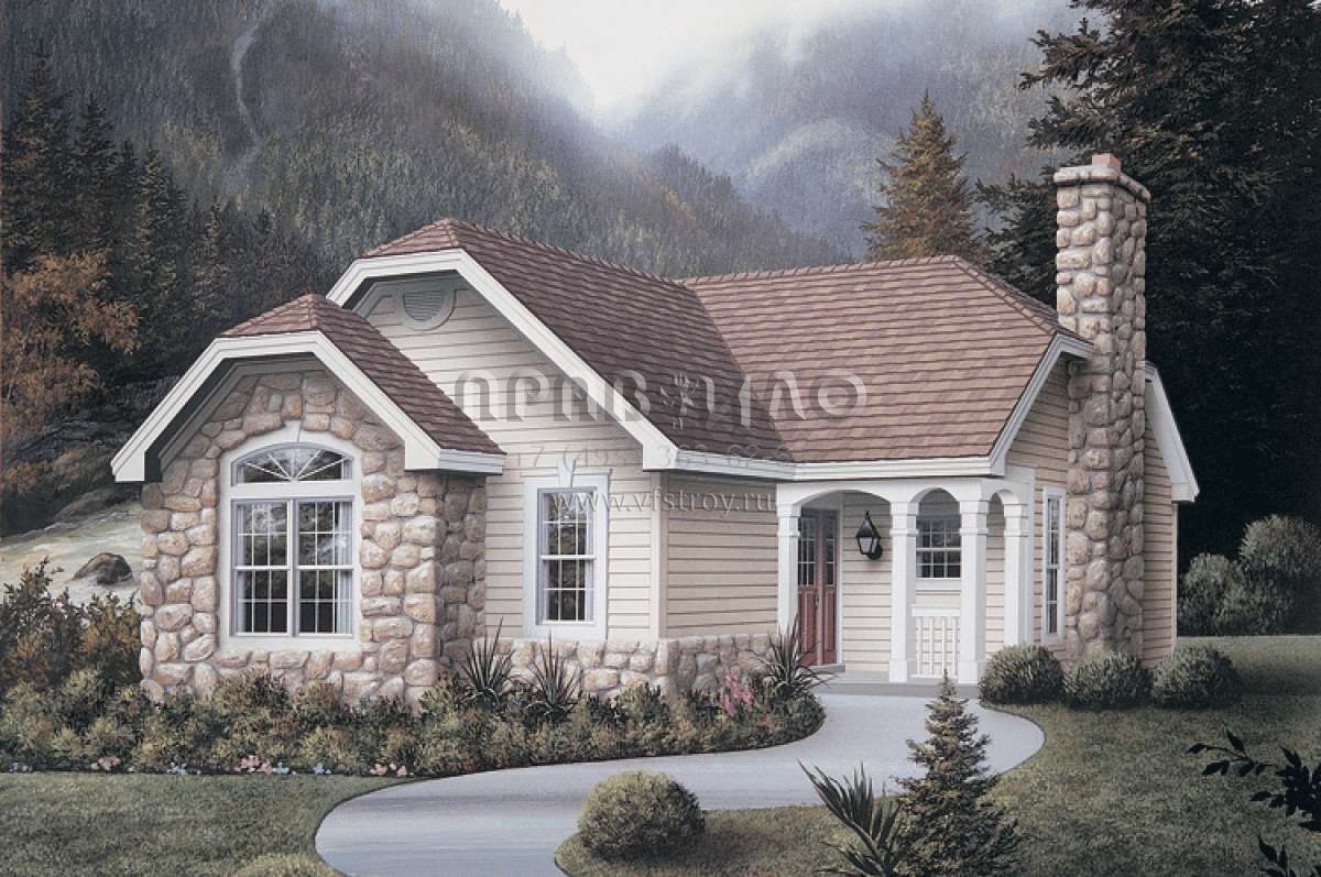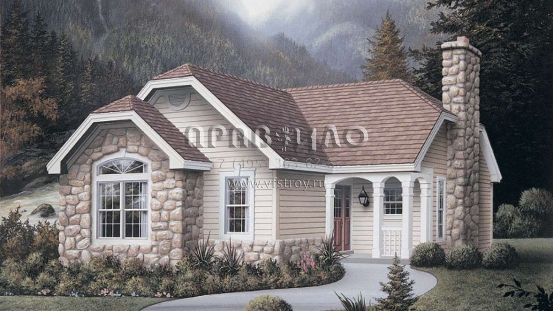 Проект одноэтажного дома с гаражом на одну машину в стиле Ранчо S5-144 (5633-00113)