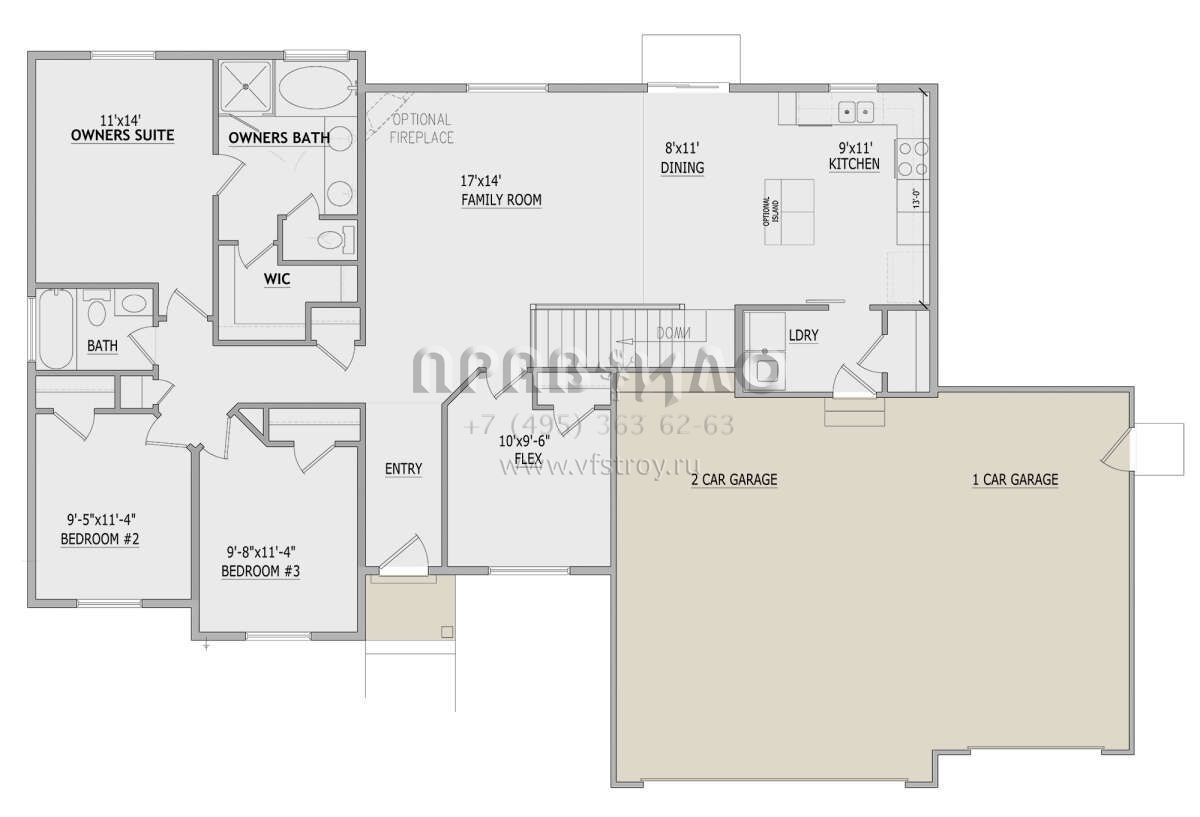 Проект одноэтажного дома с гаражом на три и более машин в стиле Ранчо S5-144 (8768-00108)