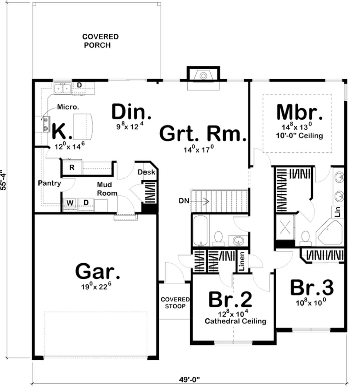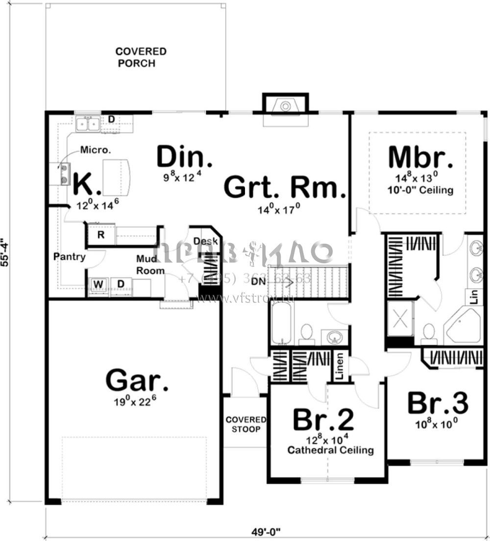 S5-144 (963-00288) Это иностранный проект, для которого требуется адаптация под нормы, действующие в Российской Федерации. Вы видите проект дома в стиле Ранчо. В этом доме сочетаются черты сельской постройки и аскетичность лофта. Внутри жильцы смогут проводить время с максимальным комфортом. Обратим внимание, что сейчас на планировках все размеры представлены в футах. Для перевода в метры вам необходимо значение в футах умножить на 0,3048.