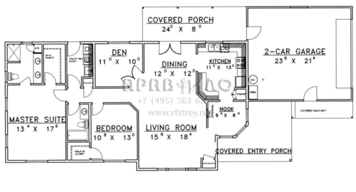 S5-145 (039-00334) Это иностранный проект, для которого требуется адаптация под нормы, действующие в Российской Федерации. Вы видите проект дома в стиле Ранчо. В этом доме сочетаются черты сельской постройки и аскетичность лофта. Внутри жильцы смогут проводить время с максимальным комфортом. Обратим внимание, что сейчас на планировках все размеры представлены в футах. Для перевода в метры вам необходимо значение в футах умножить на 0,3048.