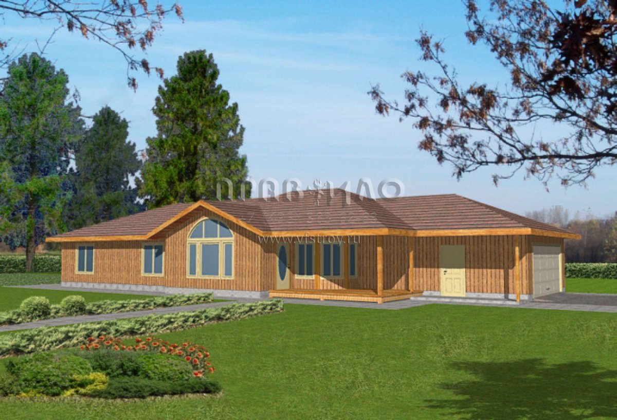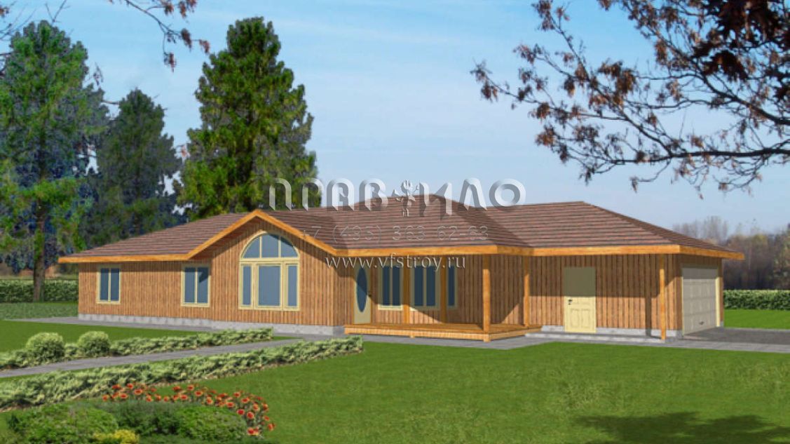 Большая площадь участка позволяет выбрать одноэтажный проект дома, особенно если в семье есть пожилые люди, инвалиды или маленькие дети.