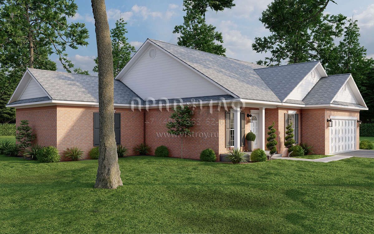 Проект одноэтажного дома с гаражом на две машины в стиле Ранчо S5-145 (110-01108)