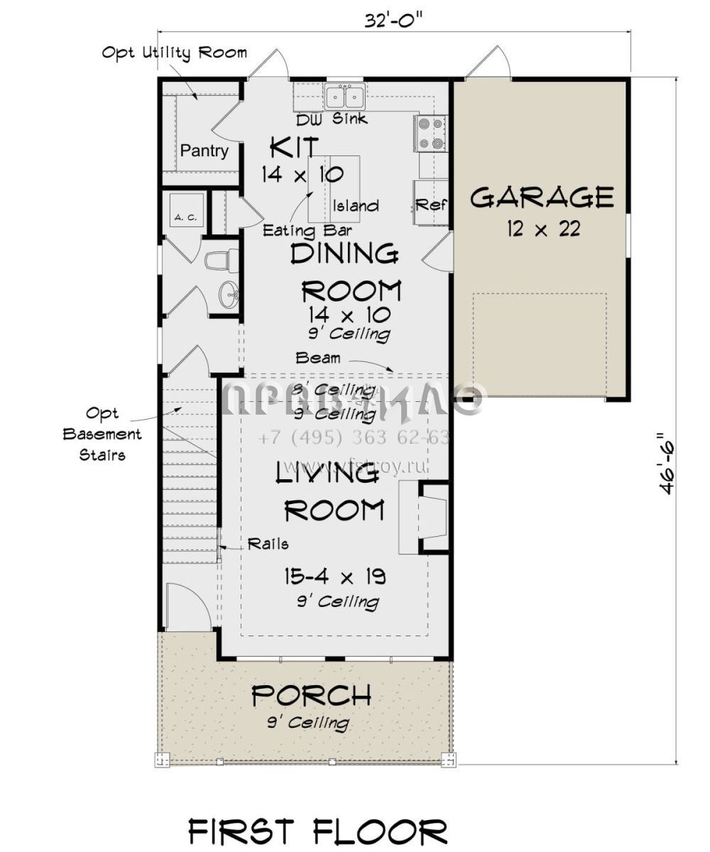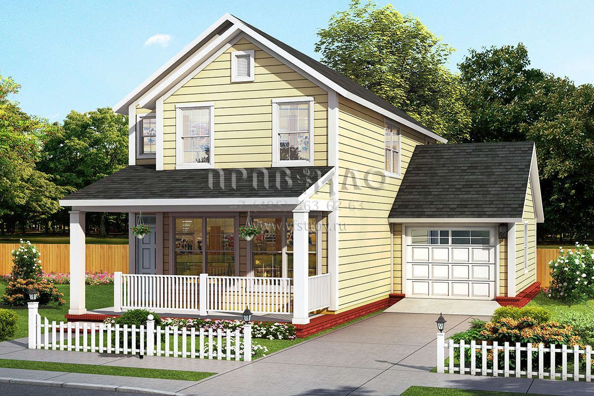 Проект двухэтажного дома с гаражом на одну машину в стиле Ранчо S5-145 (4848-00356)