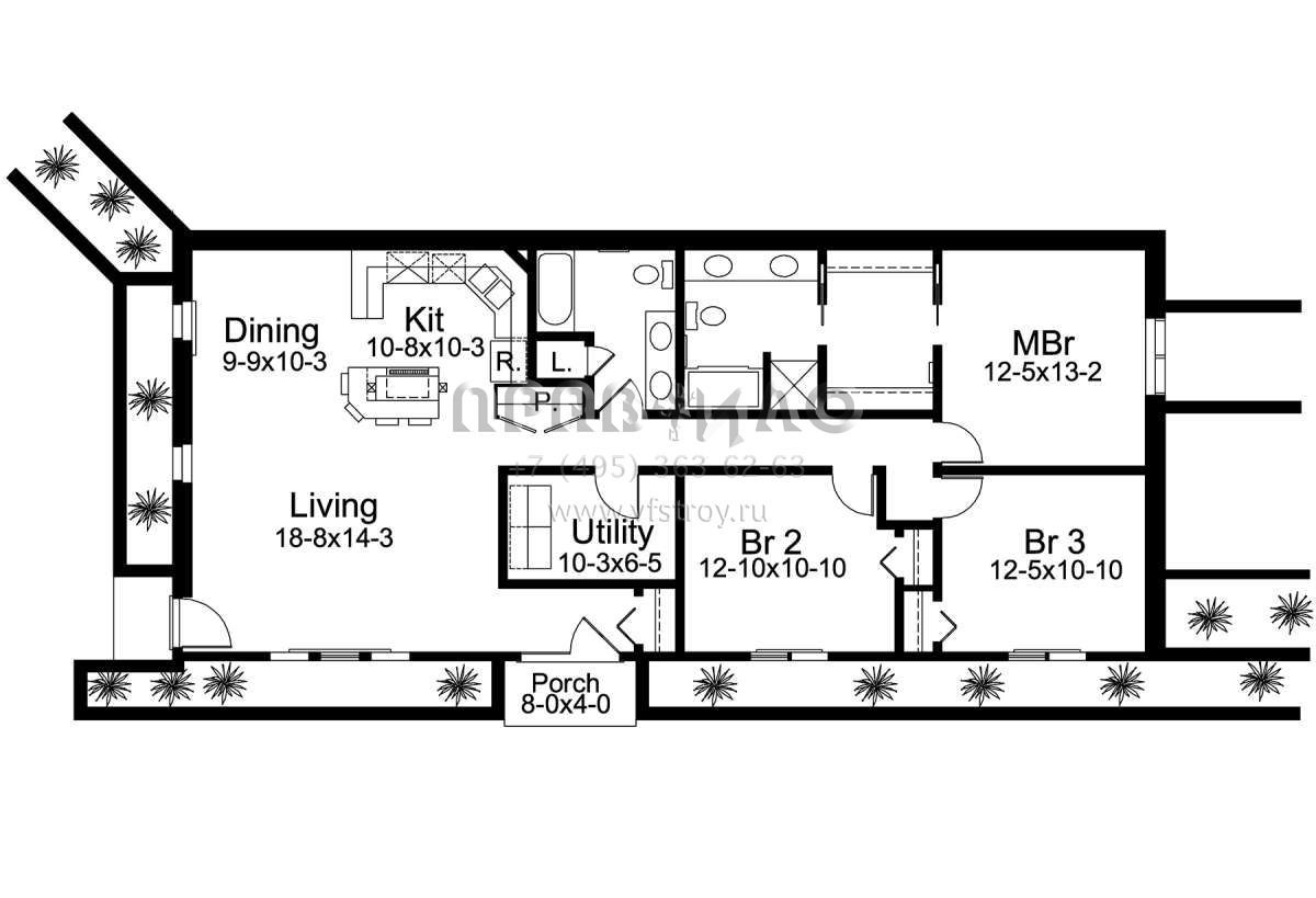 S5-145 (5633-00420) Это иностранный проект, для которого требуется адаптация под нормы, действующие в Российской Федерации. Вы видите проект дома в стиле Ранчо. В этом доме сочетаются черты сельской постройки и аскетичность лофта. Внутри жильцы смогут проводить время с максимальным комфортом. Обратим внимание, что сейчас на планировках все размеры представлены в футах. Для перевода в метры вам необходимо значение в футах умножить на 0,3048.