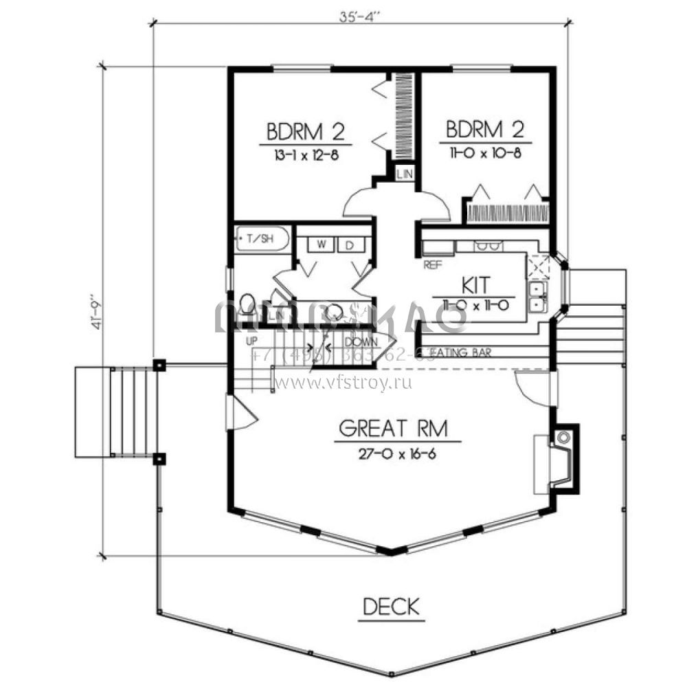 S5-145 (692-00217) Это иностранный проект, для которого требуется адаптация под нормы, действующие в Российской Федерации. Вы видите проект дома в современном стиле. В этом доме сочетаются черты сельской постройки и аскетичность лофта. Внутри жильцы смогут проводить время с максимальным комфортом. Обратим внимание, что сейчас на планировках все размеры представлены в футах. Для перевода в метры вам необходимо значение в футах умножить на 0,3048.
