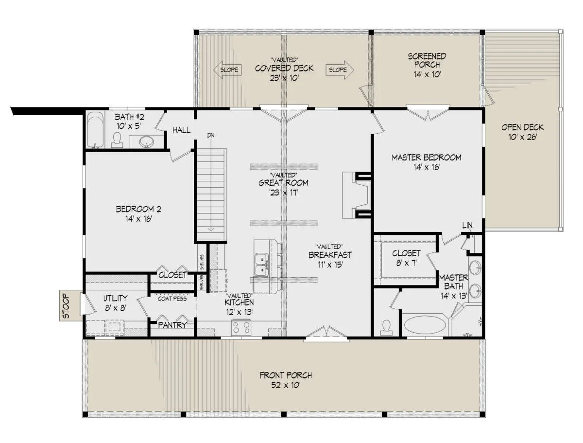 Проект одноэтажного дома без гаража в стиле Ранчо S5-145 (940-00381)