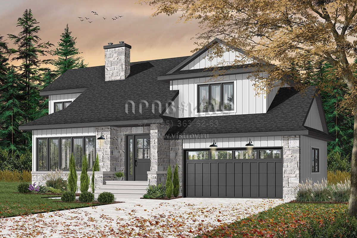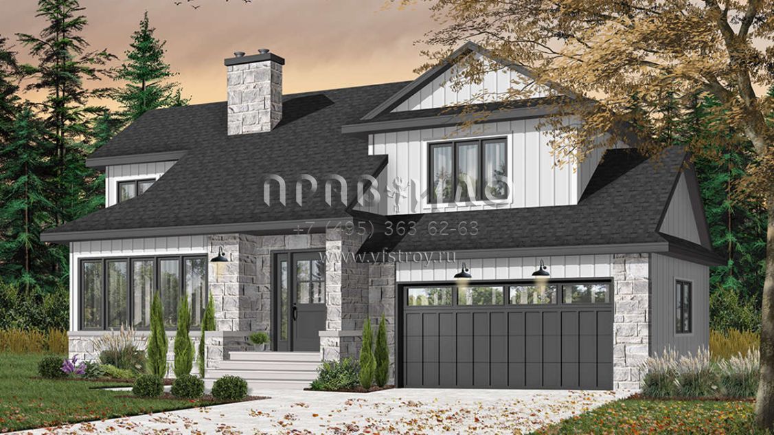 Проект двухэтажного дома с гаражом на две машины в американском стиле S5-146 (034-00369)