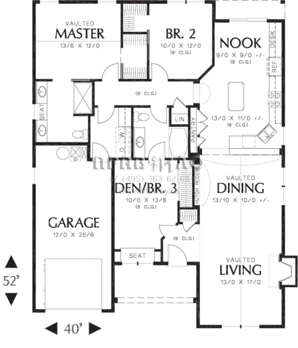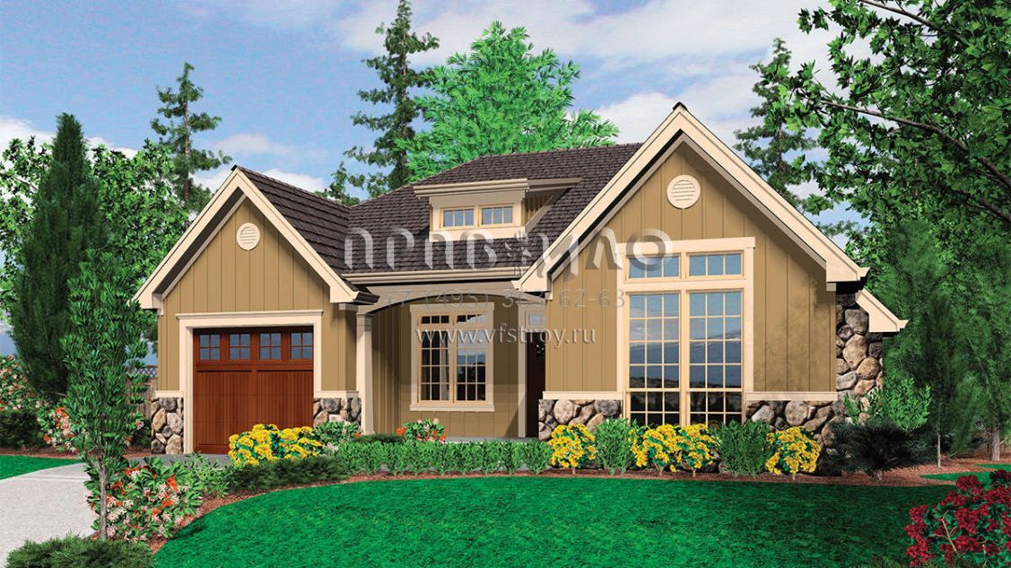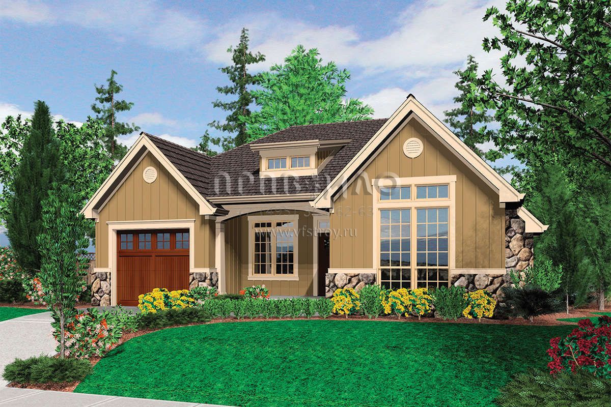 Проект одноэтажного дома с гаражом на одну машину в стиле Ранчо S5-146 (2559-00099)