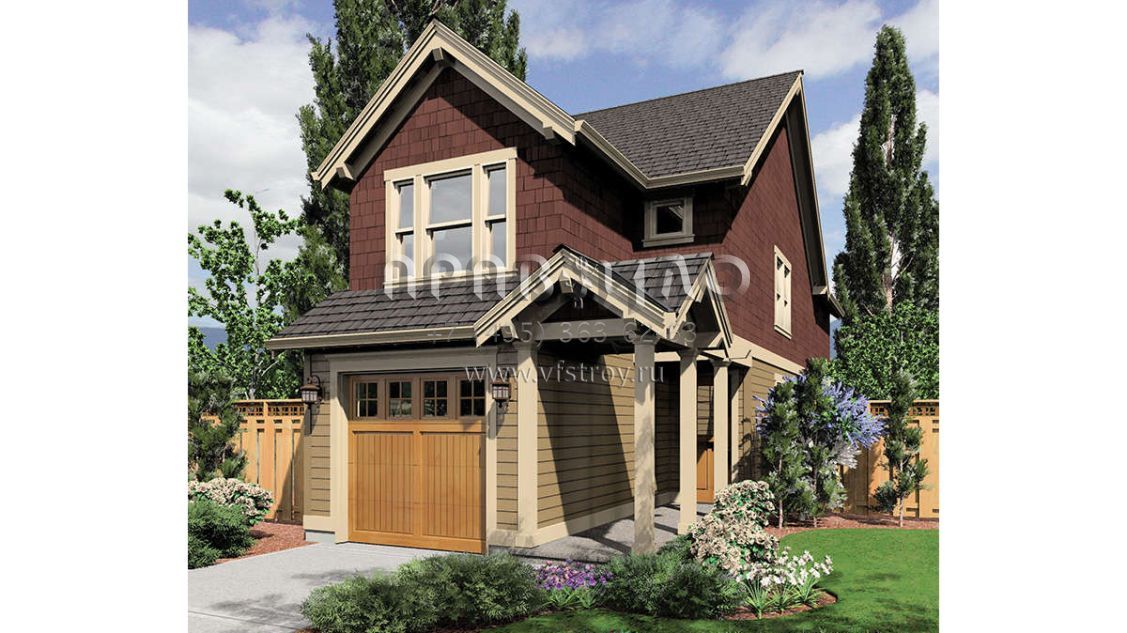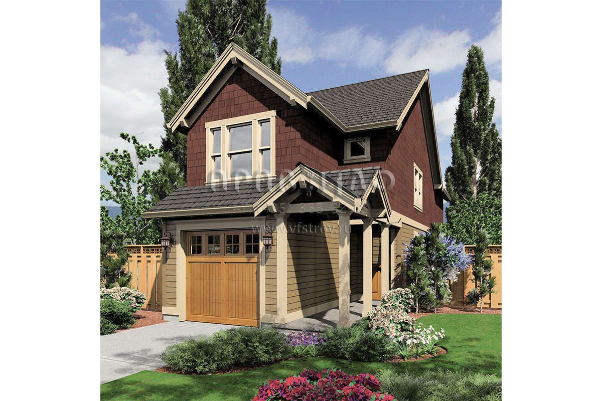 Проект двухэтажного дома с гаражом на одну машину для узких участков S5-146 (2559-00207)