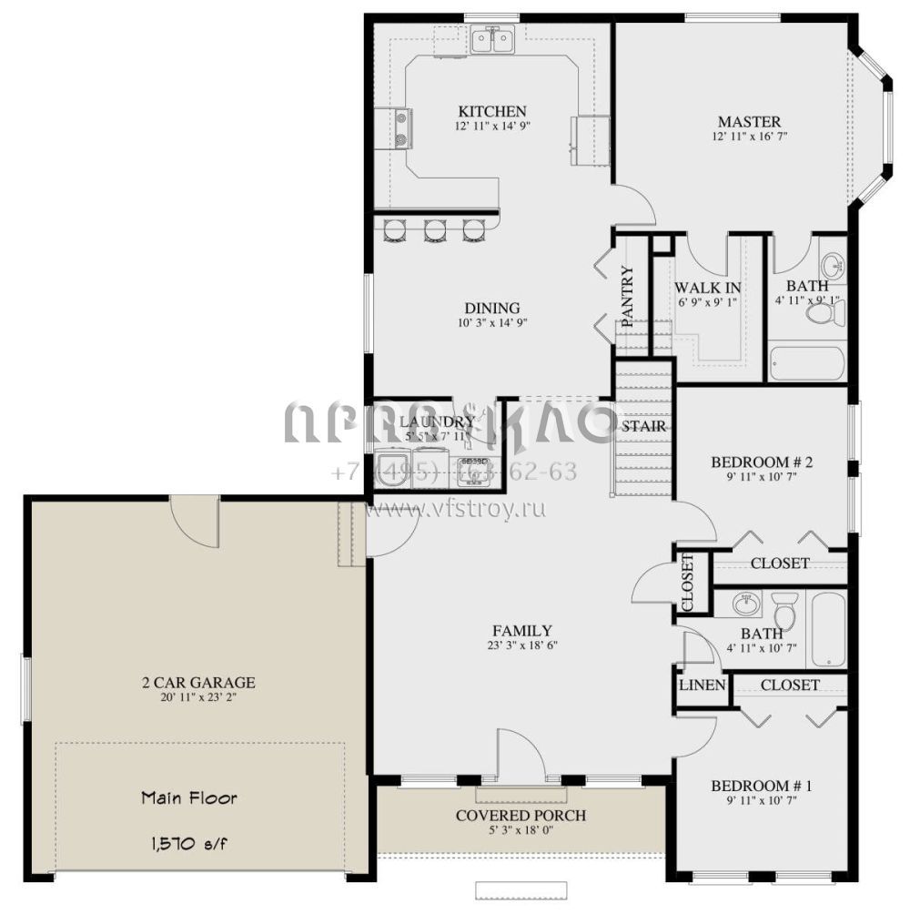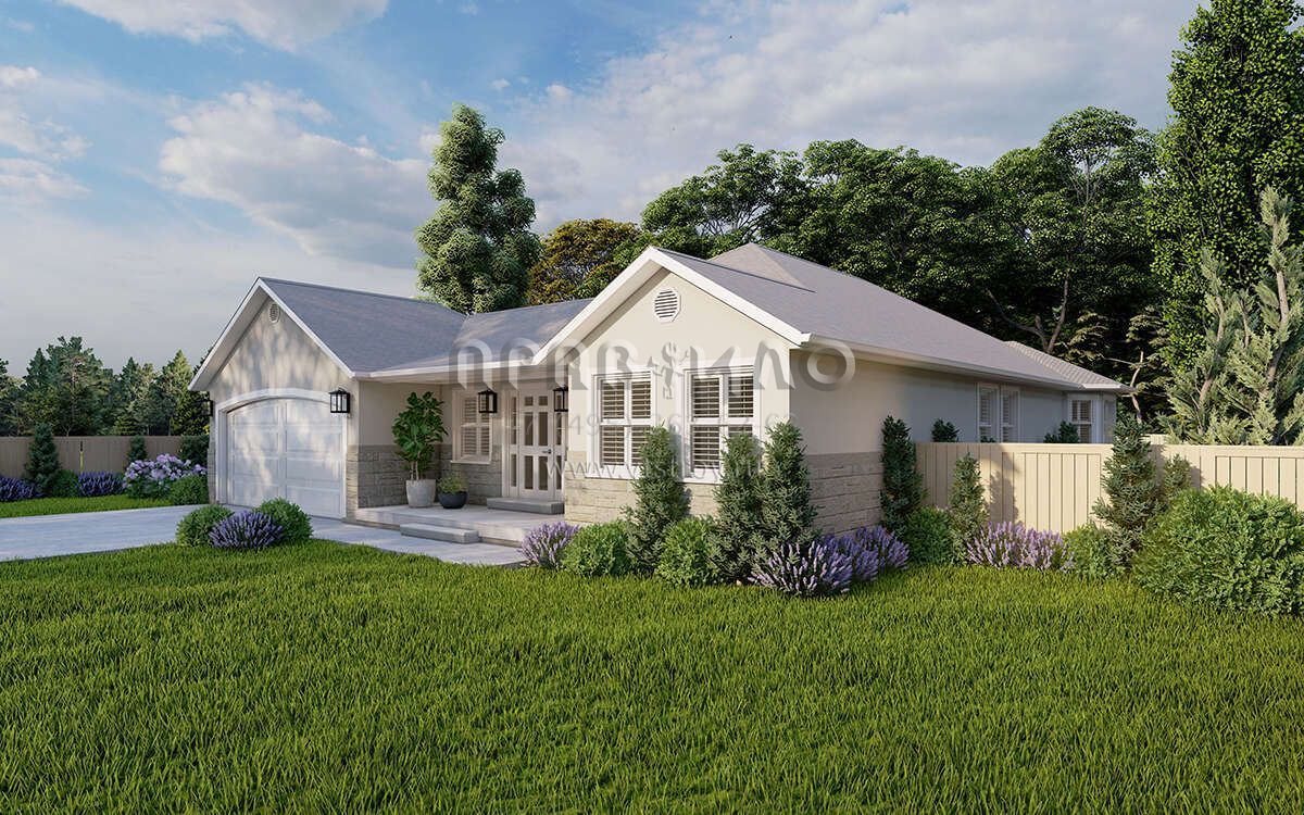 Проект одноэтажного дома с гаражом на две машины в стиле Ранчо S5-146 (2802-00249)