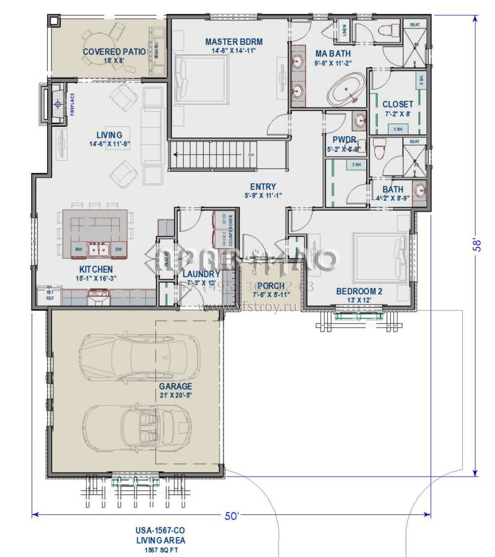 | Гараж | 2 машины |