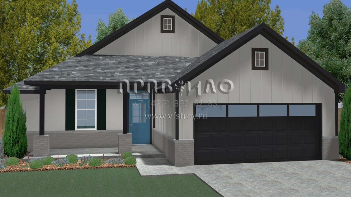 Проект одноэтажного дома с гаражом на две машины в американском стиле S5-146 (677-00008)