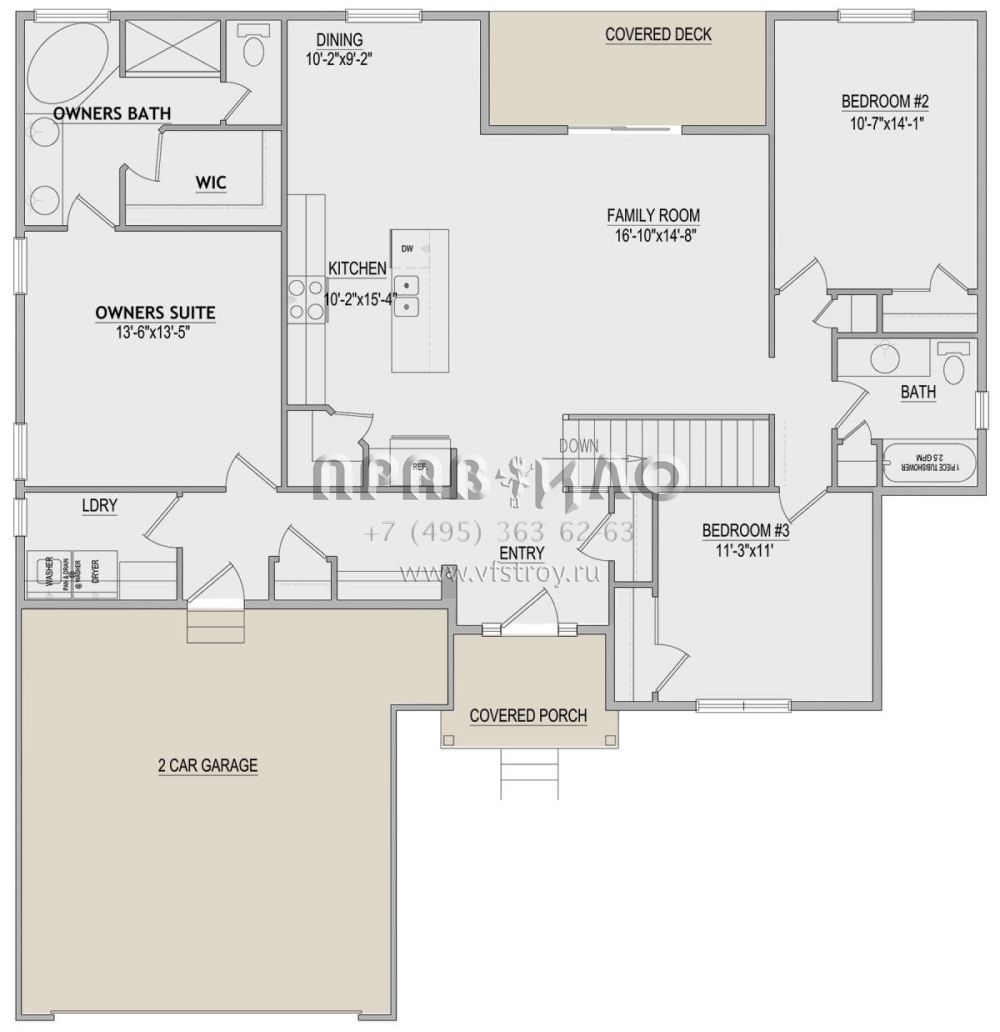 Проект одноэтажного дома с гаражом на две машины в американском стиле S5-146 (8768-00093)