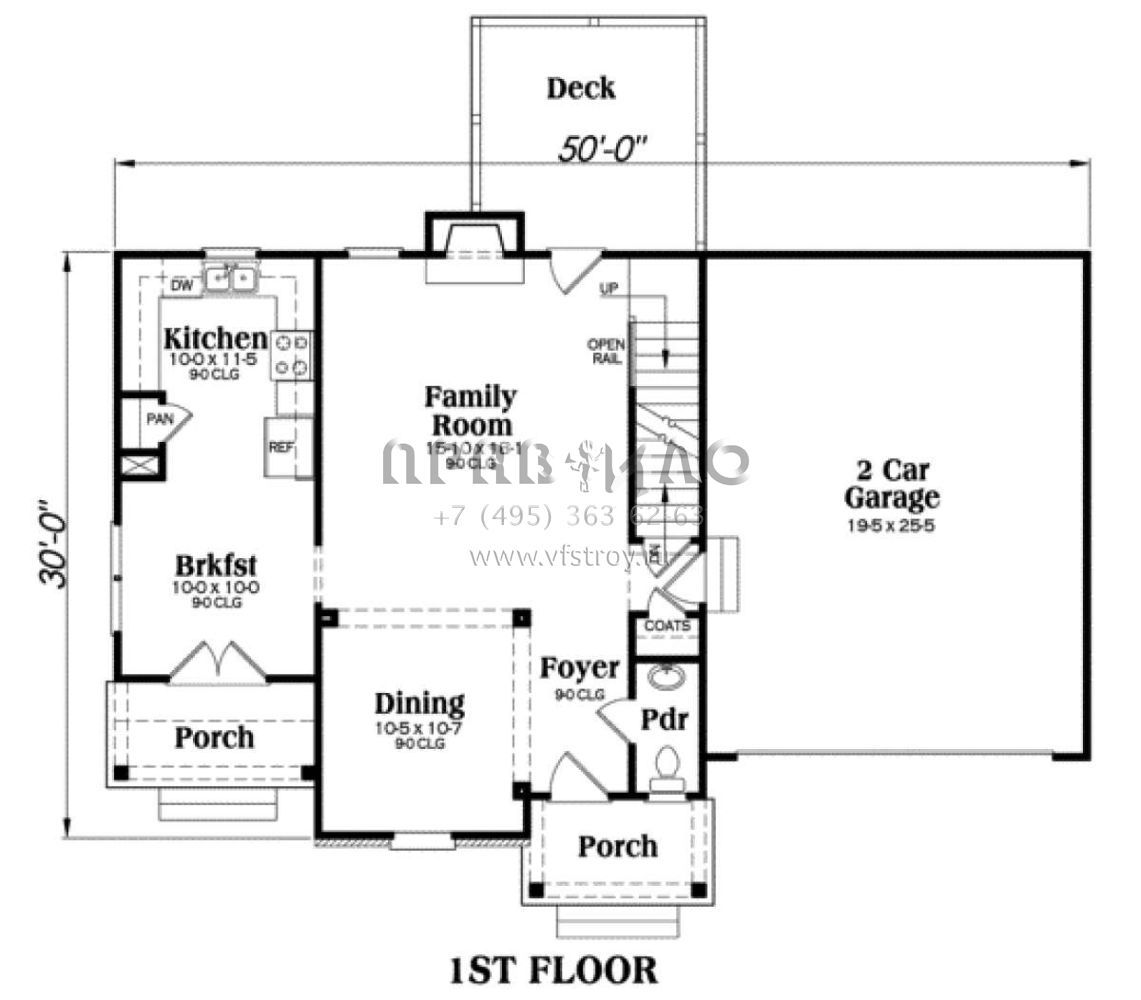 Проект двухэтажного дома с гаражом на две машины в стиле Ранчо S5-147 (009-00059)