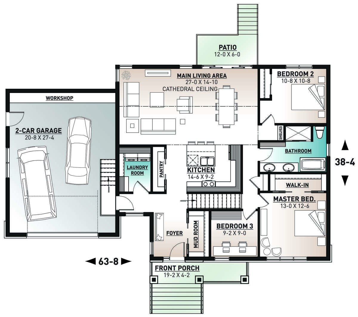 Проект одноэтажного дома с гаражом на две машины в американском стиле S5-147 (034-01241)