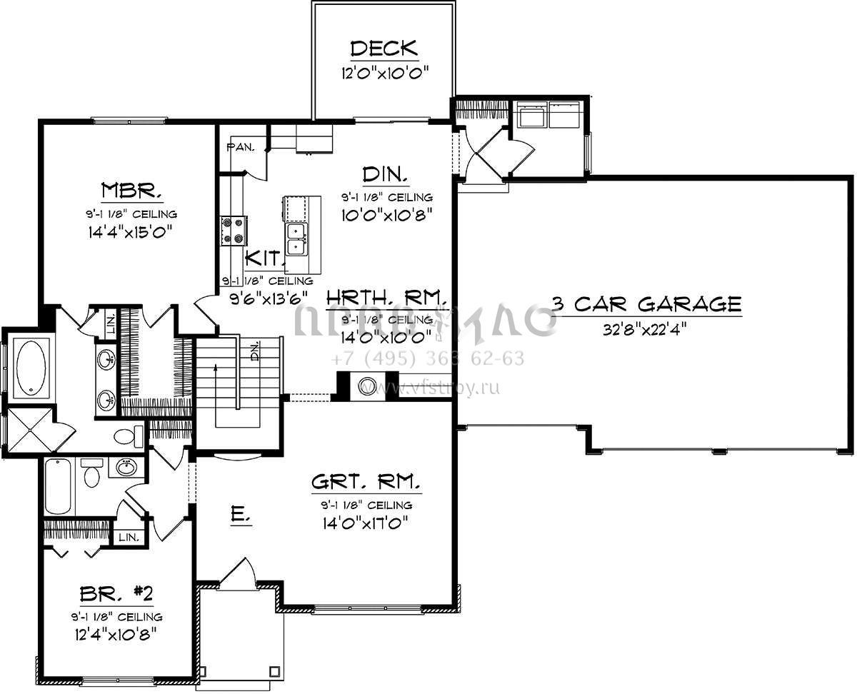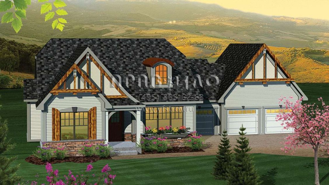 Проект одноэтажного дома с гаражом на три и более машин в английском стиле S5-147 (1020-00226)