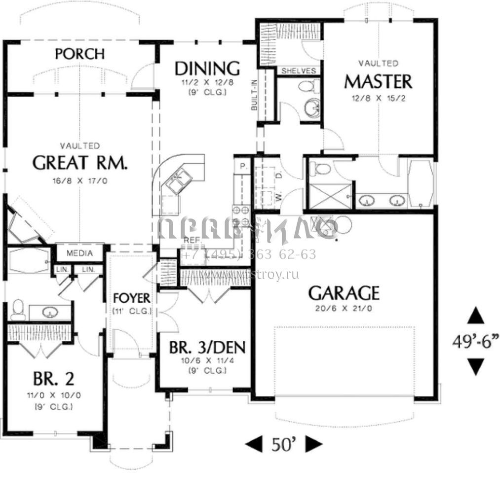 S5-147 (2559-00080) Это иностранный проект, для которого требуется адаптация под нормы, действующие в Российской Федерации. Вы видите проект дома в стиле Ранчо. В этом доме сочетаются черты сельской постройки и аскетичность лофта. Внутри жильцы смогут проводить время с максимальным комфортом. Обратим внимание, что сейчас на планировках все размеры представлены в футах. Для перевода в метры вам необходимо значение в футах умножить на 0,3048.