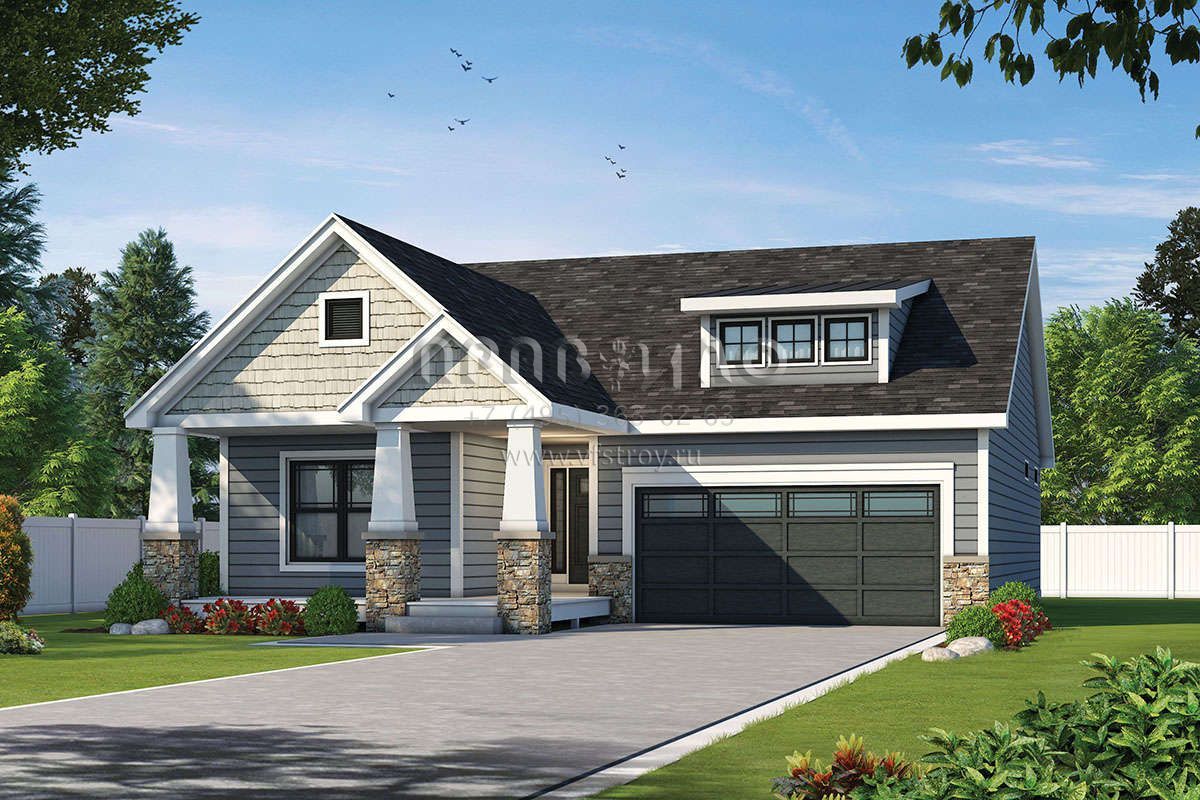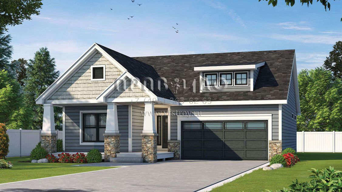 Проект одноэтажного дома с гаражом на две машины в американском стиле S5-147 (402-01604)