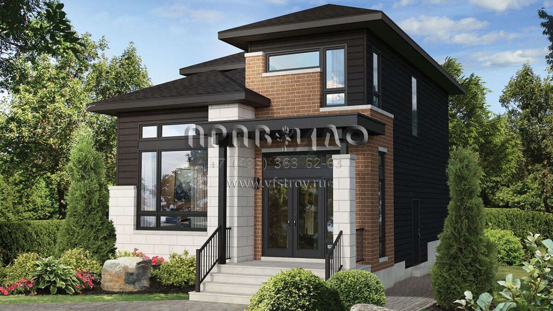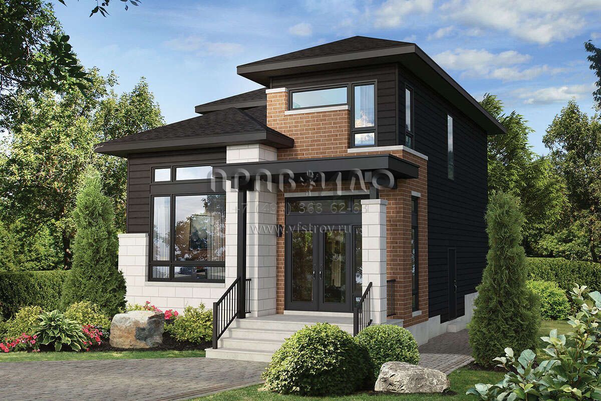 Двухэтажный проект дома позволяет рационально распорядиться площадью участка небольшого размера или узкой формы. На первом этаже находятся общие комнаты (гостиная/столовая, кухня, подсобные и технические помещения), на втором — спальни членов семьи.
