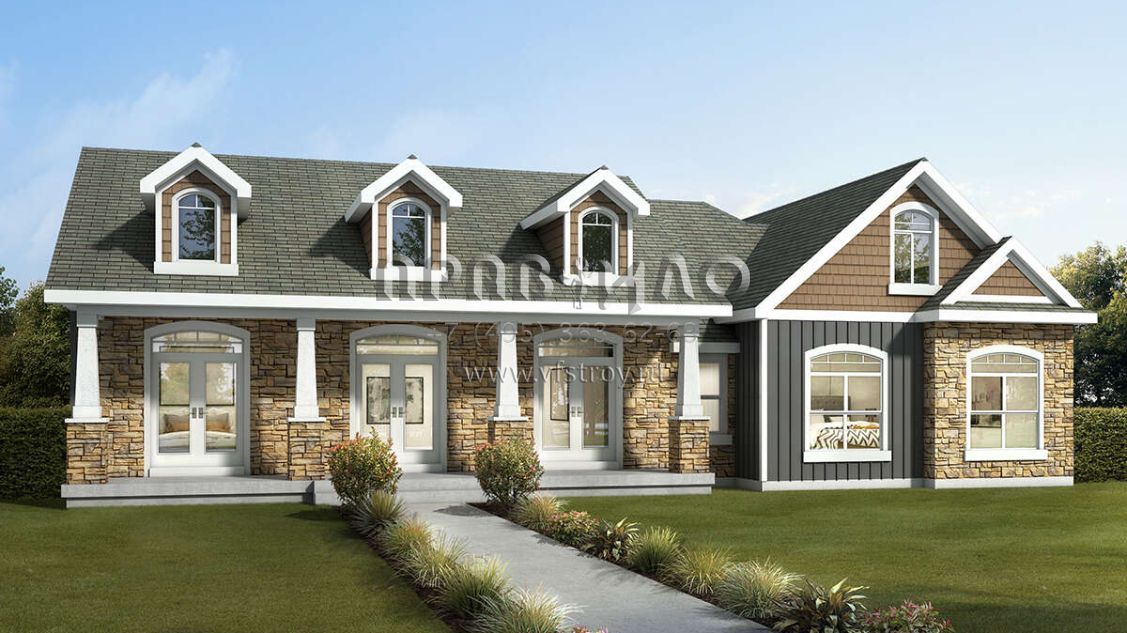 Проект одноэтажного дома с гаражом на две машины в стиле Ранчо S5-147 (7306-00013)