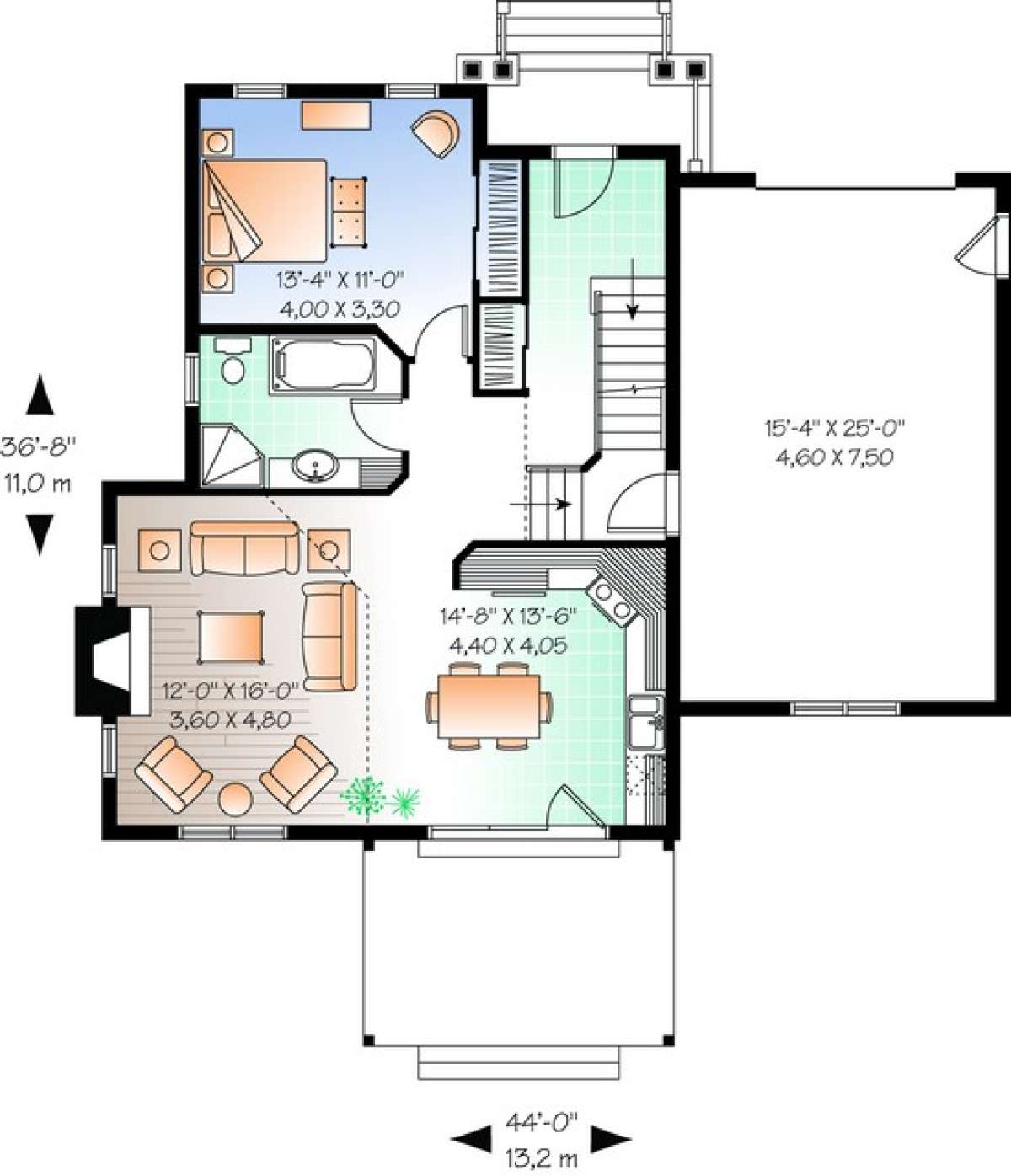 S5-148 (034-00884) Это иностранный проект, для которого требуется адаптация под нормы, действующие в Российской Федерации. Вы видите проект дома в современном стиле. В этом доме сочетаются черты сельской постройки и аскетичность лофта. Внутри жильцы смогут проводить время с максимальным комфортом. Обратим внимание, что сейчас на планировках все размеры представлены в футах. Для перевода в метры вам необходимо значение в футах умножить на 0,3048.