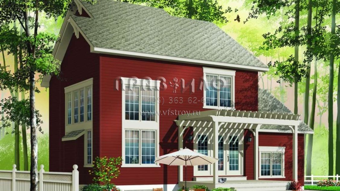 Двухэтажный проект дома позволяет рационально распорядиться площадью участка небольшого размера или узкой формы. На первом этаже находятся общие комнаты (гостиная/столовая, кухня, подсобные и технические помещения), на втором — спальни членов семьи.