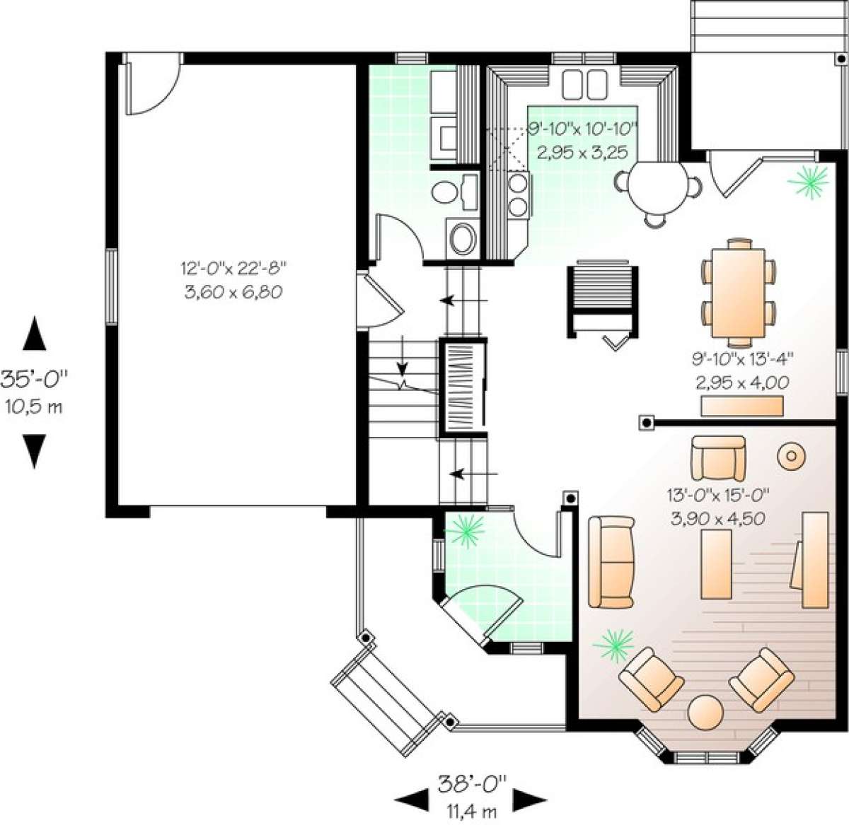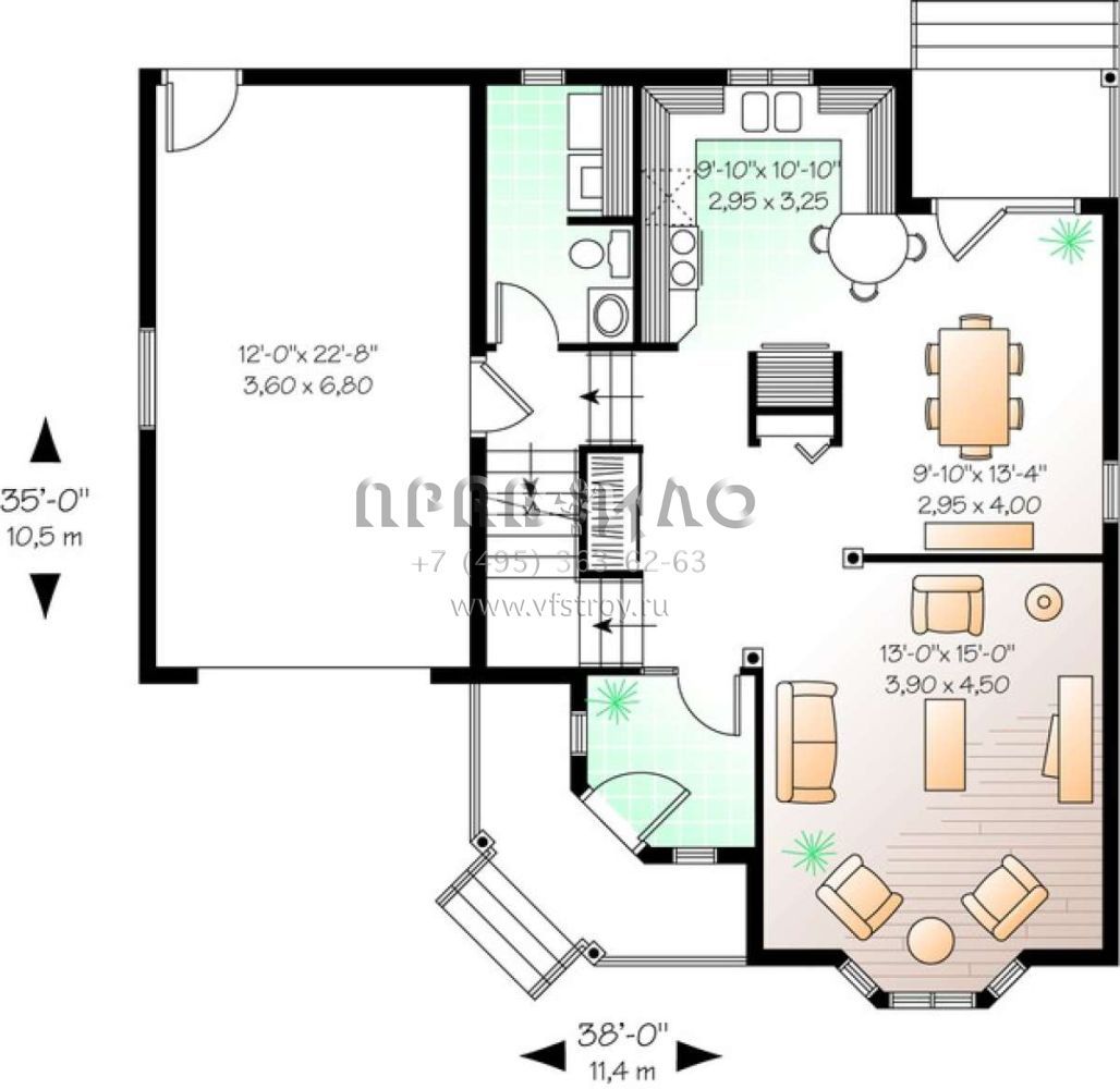 S5-148 (034-00917) Это иностранный проект, для которого требуется адаптация под нормы, действующие в Российской Федерации. Вы видите проект дома в английском стиле. В этом доме сочетаются черты сельской постройки и аскетичность лофта. Внутри жильцы смогут проводить время с максимальным комфортом. Обратим внимание, что сейчас на планировках все размеры представлены в футах. Для перевода в метры вам необходимо значение в футах умножить на 0,3048.